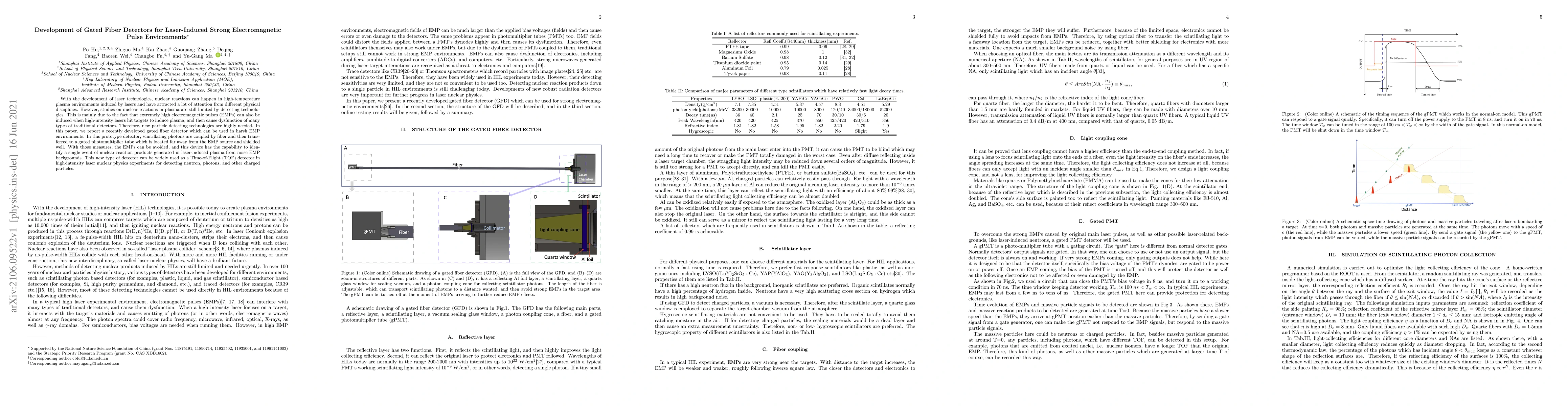 With the development of laser technologies, nuclear reactions can happen in high-temperature plasma environments induced by lasers and have attracted a lot of attention from different physical disciplines. However, studies on nuclear reactions in plasma are still limited by detecting technologies. This is mainly due to the fact that extremely high electromagnetic pulses (EMPs) can also be induced when high-intensity lasers hit targets to induce plasma, and then cause dysfunction of many types of traditional detectors. Therefore, new particle detecting technologies are highly needed. In this paper, we report a recently developed gated fiber detector which can be used in harsh EMP environments. In this prototype detector, scintillating photons are coupled by fiber and then transferred to a gated photomultiplier tube which is located far away from the EMP source and shielded well. With those measures, the EMPs can be avoided, and this device has the capability to identify a single event of nuclear reaction products generated in laser-induced plasma from noise EMP backgrounds. This new type of detector can be widely used as a Time-of-Flight (TOF) detector in high-intensity laser nuclear physics experiments for detecting neutron, photons, and other charged particles.