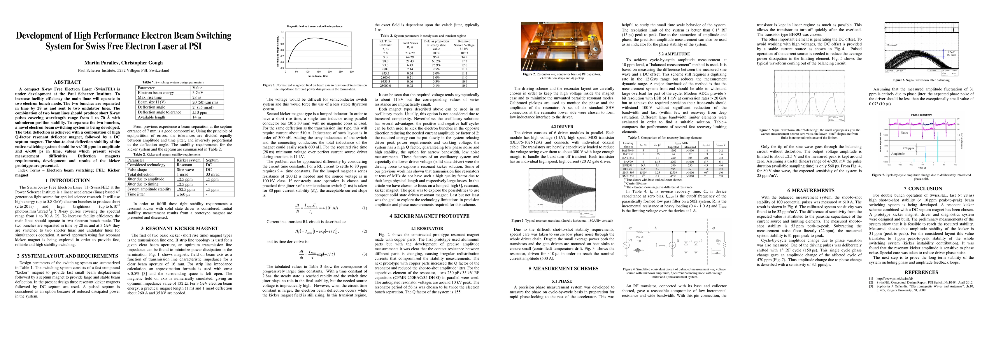 This paper details the development of a high-performance electron beam switching system for the SwissFEL at PSI, designed to separate electron bunches for two undulator lines, achieving submicron stability and precise timing within +/- 10 ppm and +/- 100 ps. The system employs a high Q-factor resonant deflector magnet and a DC septum magnet, with prototype results presented.
