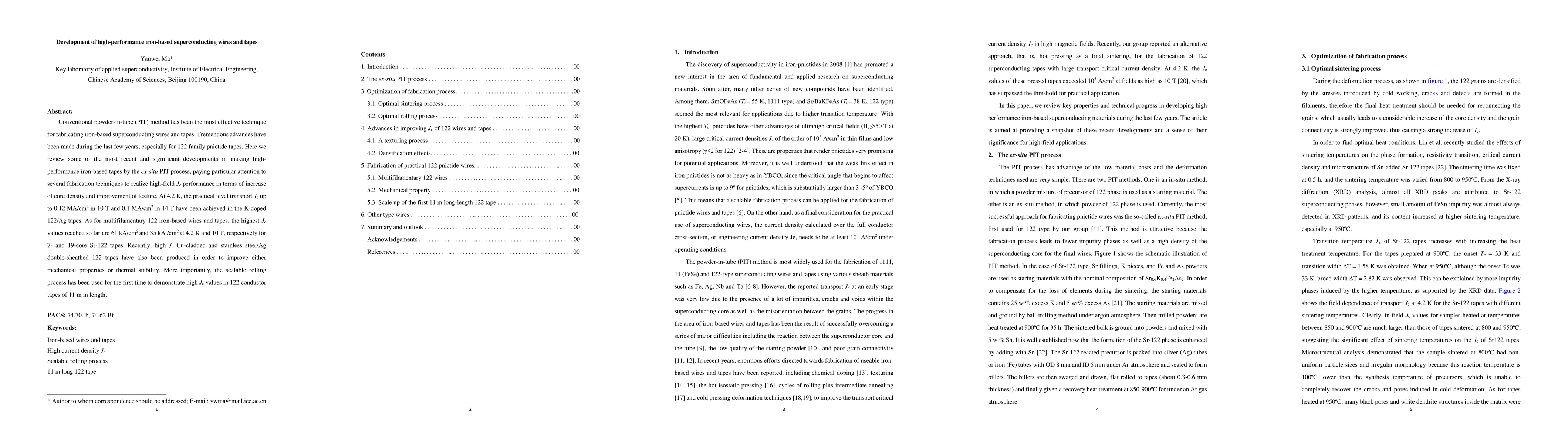 This paper reviews recent advancements in fabricating high-performance iron-based superconducting tapes using the ex-situ powder-in-tube method, achieving transport current densities up to 0.12 MA/cm² in 10 T at 4.2 K. It highlights significant improvements in core density and texture, and demonstrates scalable rolling processes for 11 m long tapes.