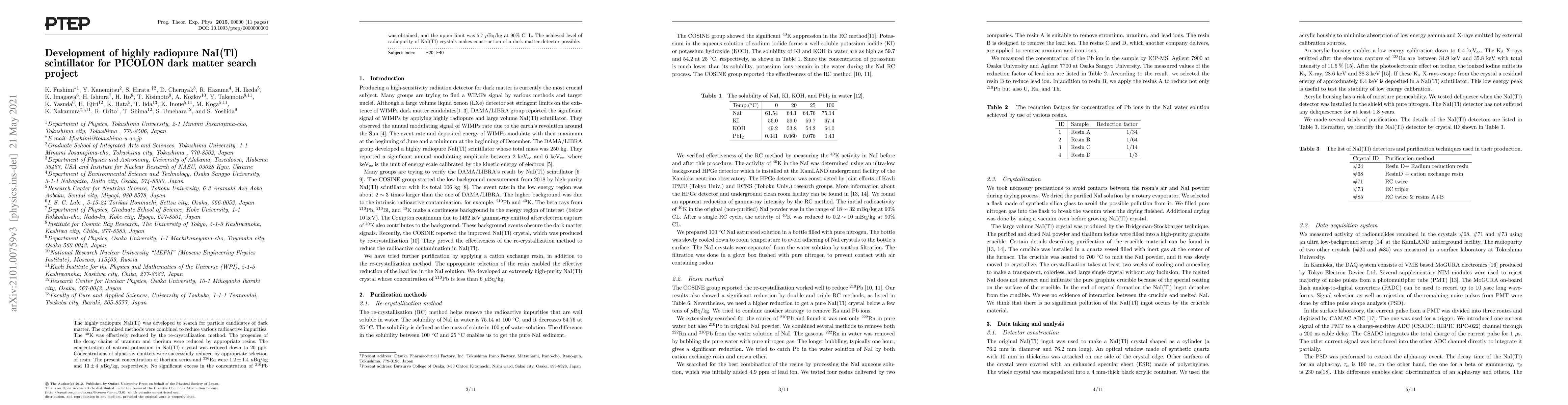 Researchers developed a highly radiopure NaI(Tl) scintillator to detect dark matter, achieving concentrations of radioactive impurities at 20 ppb and below, making a dark matter detector construction possible.
