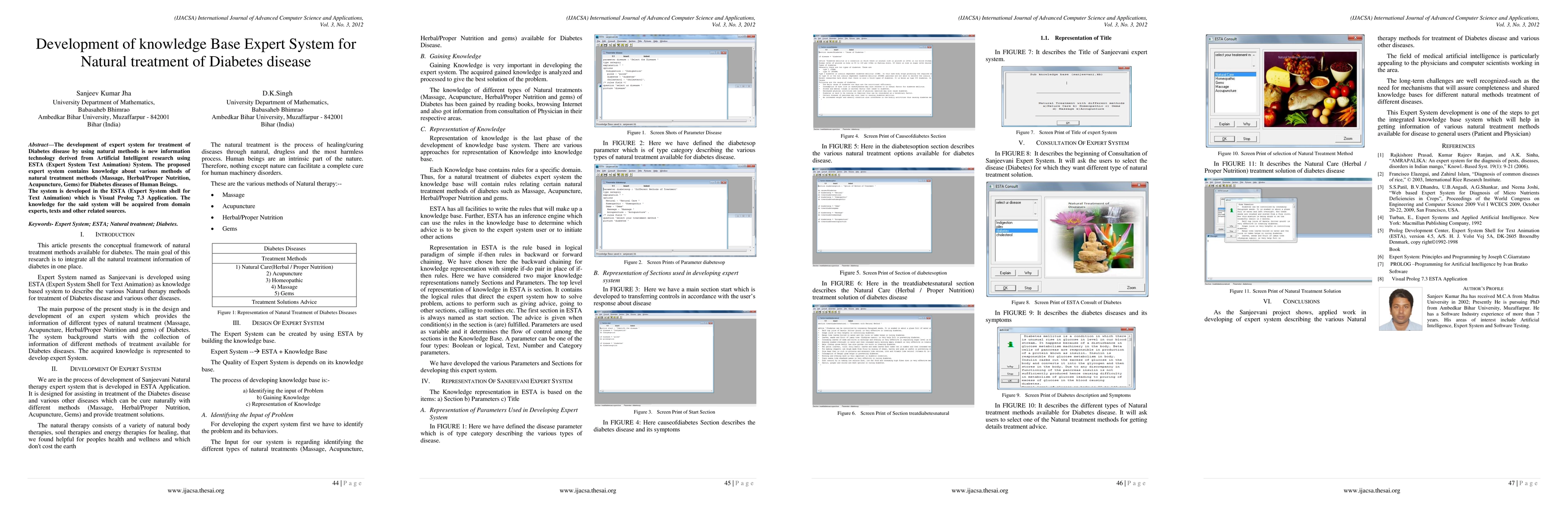 This paper develops an expert system using ESTA and Visual Prolog 7.3 to provide natural treatment methods for diabetes, including massage, herbal nutrition, acupuncture, and gems. Knowledge is sourced from domain experts and related texts.