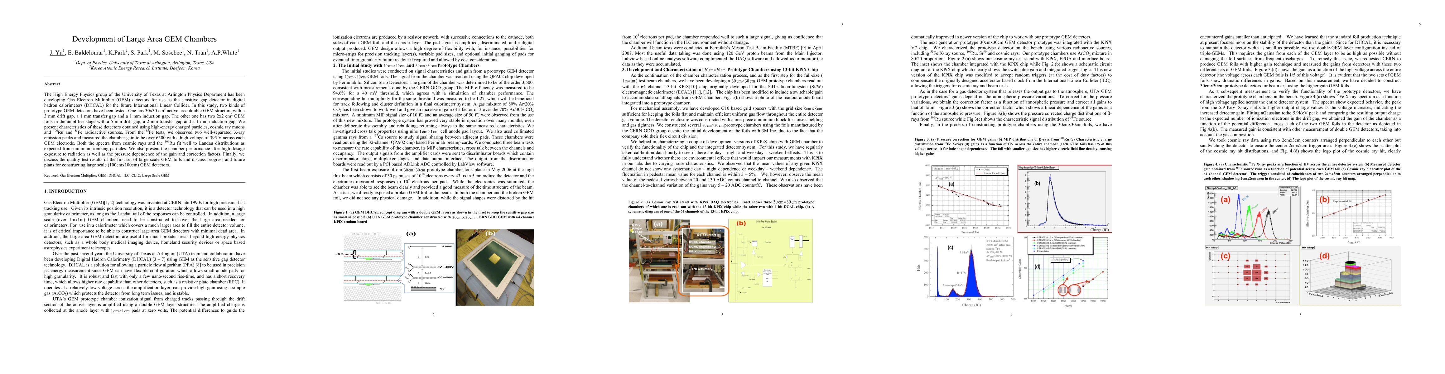 The research involved developing and testing two kinds of prototype Gas Electron Multiplier (GEM) detectors for use in digital hadron calorimeters (DHCAL) for the International Linear Collider. Characteristics of these detectors were obtained using high-energy charged particles, cosmic ray muons, and radioactive sources like 55Fe and 106Ru.