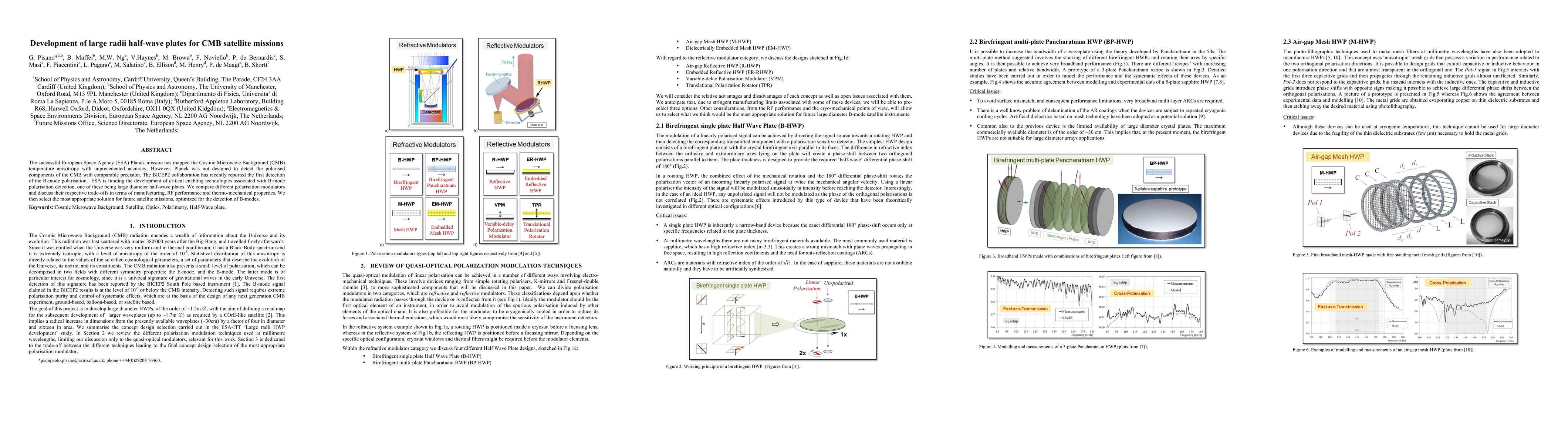 Researchers developed large diameter half-wave plates for detecting B-mode polarisation in CMB satellite missions, weighing manufacturing, RF performance and thermo-mechanical properties.