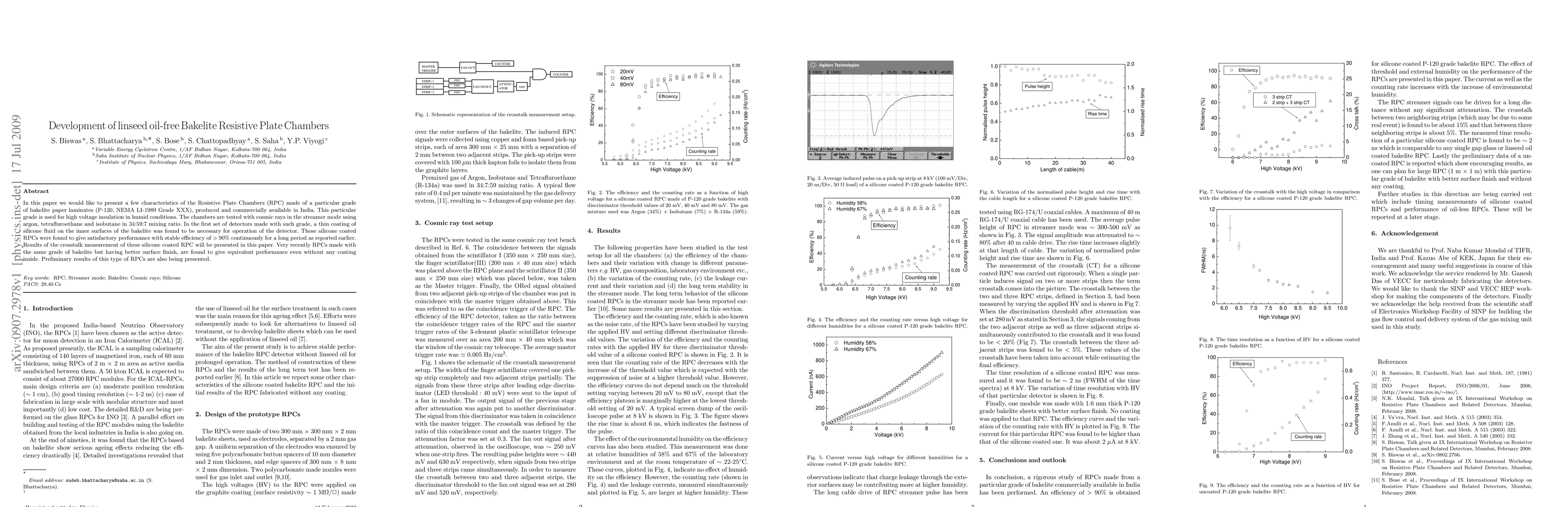 This paper discusses the development of linseed oil-free bakelite resistive plate chambers, highlighting their performance in cosmic ray detection. Silicone-coated chambers show stable efficiency over 90%, while newer chambers with improved surface finish perform equivalently without coatings.