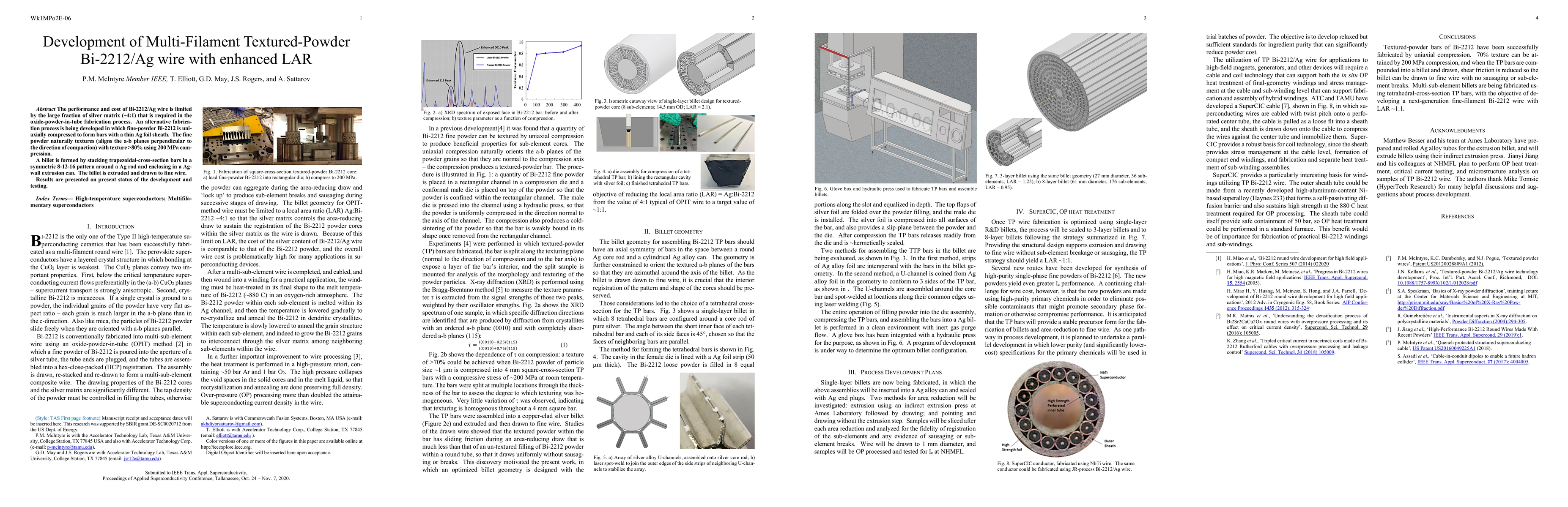 The performance and cost of Bi-2212/Ag wire is limited by the large fraction of silver matrix (~3:1) that is required in the oxide-powder-in-tube fabrication process. An alternative fabrication process is being developed in which fine-powder Bi-2212 is uni-axially compressed to form bars with a thin Ag foil sheath. The fine powder naturally textures (aligns the a-b planes perpendicular to the direction of compaction) with texture >80% using 200 MPa compression. A billet is formed by stacking trapezoidal-cross-section bars in a symmetric 8-12-16 pattern around a Ag rod and enclosing in a Ag-wall extrusion can. The billet is extruded and drawn to fine wire. Results are presented on present status of the development and testing.
