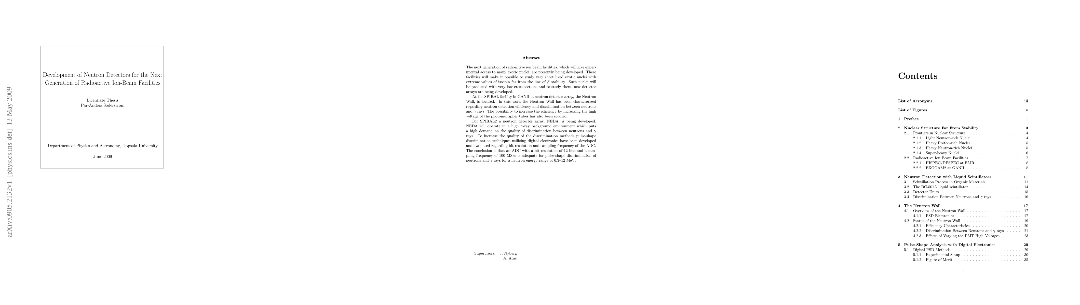 The next generation of radioactive ion beam facilities, which will give experimental access to many exotic nuclei, are presently being developed. These facilities will make it possible to study very short lived exotic nuclei with extreme values of isospin far from the line of beta stability. Such nuclei will be produced with very low cross sections and to study them, new detector arrays are being developed. At the SPIRAL facility in GANIL a neutron detector array, the Neutron Wall, is located. In this work the Neutron Wall has been characterized regarding neutron detection efficiency and discrimination between neutrons and gamma rays. The possibility to increase the efficiency by increasing the high voltage of the photomultiplier tubes has also been studied. For SPIRAL2 a neutron detector array, NEDA, is being developed. NEDA will operate in a high gamma-ray background environment which puts a high demand on the quality of discrimination between neutrons and gamma rays. To increase the quality of the discrimination methods pulse-shape discrimination techniques utilizing digital electronics have been developed and evaluated regarding bit resolution and sampling frequency of the ADC. The conclusion is that an ADC with a bit resolution of 12 bits and a sampling frequency of 100 MS/s is adequate for pulse-shape discrimination of neutrons and gamma rays for a neutron energy range of 0.3-12 MeV.