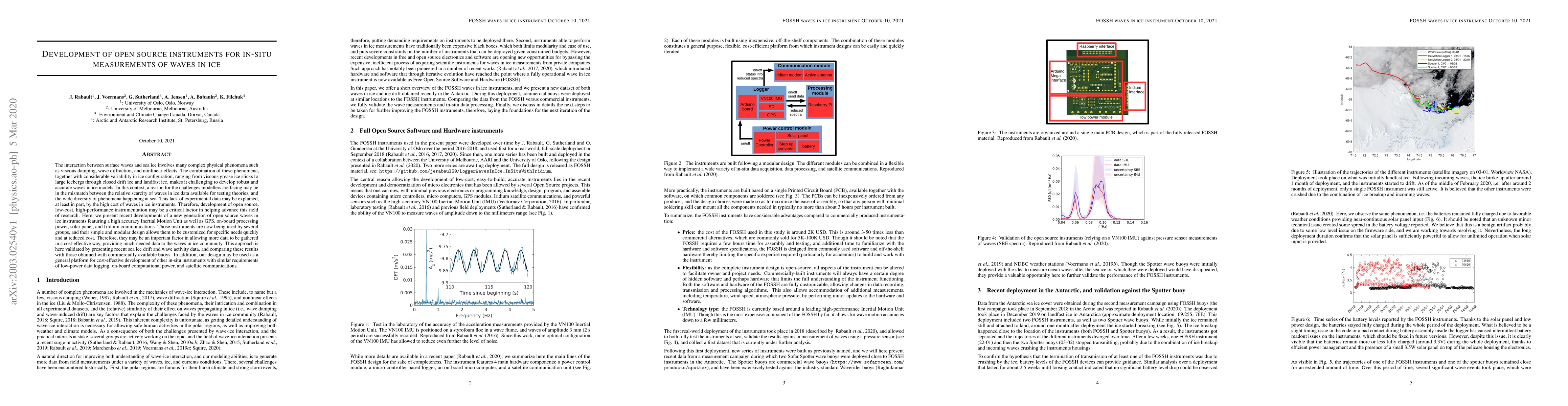 The interaction between surface waves and sea ice involves many complex physical phenomena such as viscous damping, wave diffraction, and nonlinear effects. The combination of these phenomena, together with considerable variability in ice configuration, ranging from viscous grease ice slicks to large icebergs through closed drift ice and landfast ice, makes it challenging to develop robust and accurate waves in ice models. In this context, a reason for the challenges modellers are facing may lie in the mismatch between the relative scarcity of waves in ice data available for testing theories, and the wide diversity of phenomena happening at sea. This lack of experimental data may be explained, at least in part, by the high cost of waves in ice instruments. Therefore, development of open source, low-cost, high-performance instrumentation may be a critical factor in helping advance this field of research. Here, we present recent developments of a new generation of open source waves in ice instruments featuring a high accuracy Inertial Motion Unit as well as GPS, on-board processing power, solar panel, and Iridium communications. Those instruments are now being used by several groups, and their simple and modular design allows them to be customized for specific needs quickly and at reduced cost. Therefore, they may be an important factor in allowing more data to be gathered in a cost-effective way, providing much-needed data to the waves in ice community. This approach is here validated by presenting recent sea ice drift and wave activity data, and comparing these results with those obtained with commercially available buoys. In addition, our design may be used as a general platform for cost-effective development of other in-situ instruments with similar requirements of low-power data logging, on-board computational power, and satellite communications.