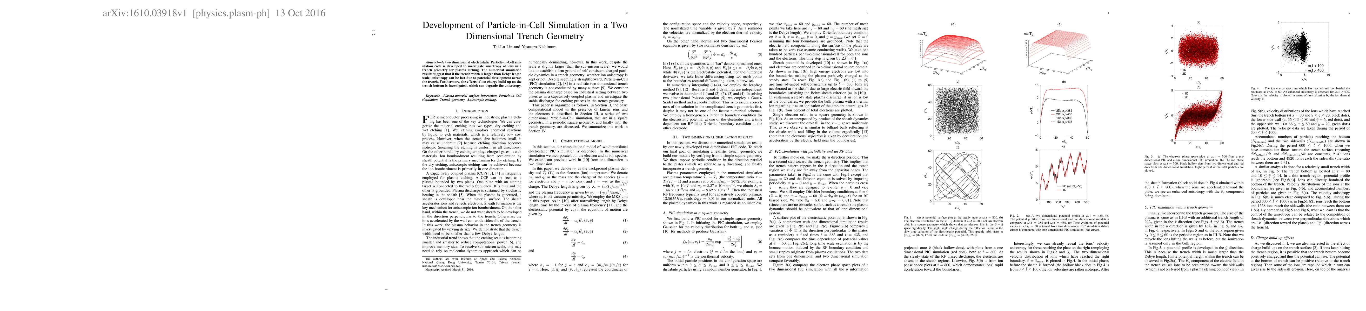 This paper develops a 2D electrostatic Particle-in-Cell simulation to study ion anisotropy in trench geometry for plasma etching. Results indicate that trench widths larger than the Debye length may lead to loss of anisotropy due to potential differences, and ion charge buildup at the trench bottom can further degrade anisotropy.
