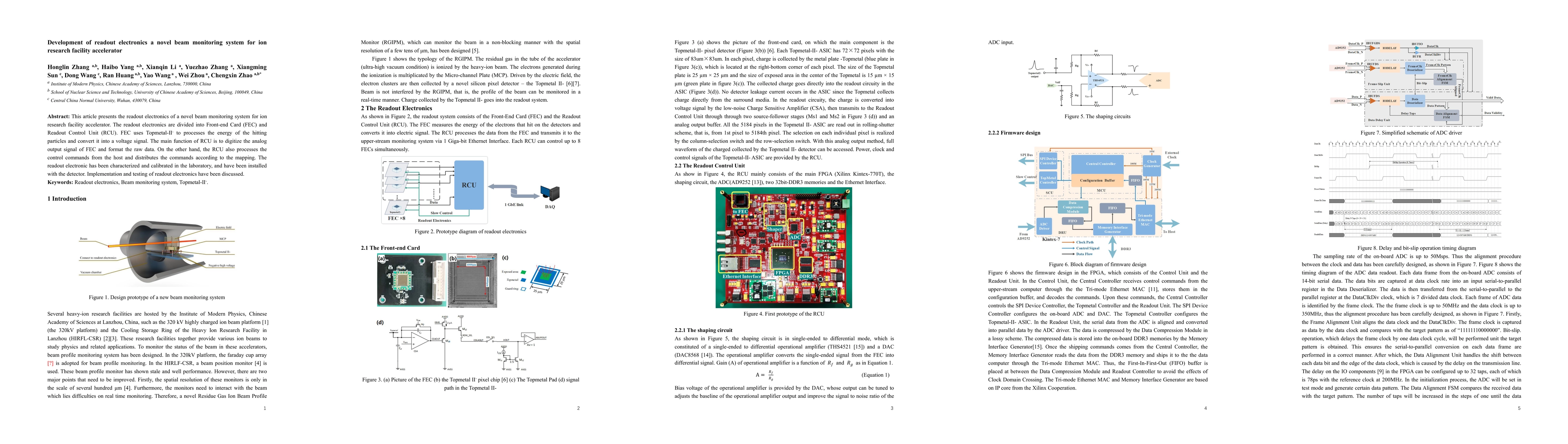 This paper details the development of readout electronics for a new beam monitoring system in an ion research facility accelerator, comprising a Front-end Card and a Readout Control Unit, with laboratory characterization and installation of the detector. The system converts particle energy into voltage signals and digitizes the data for further processing.
