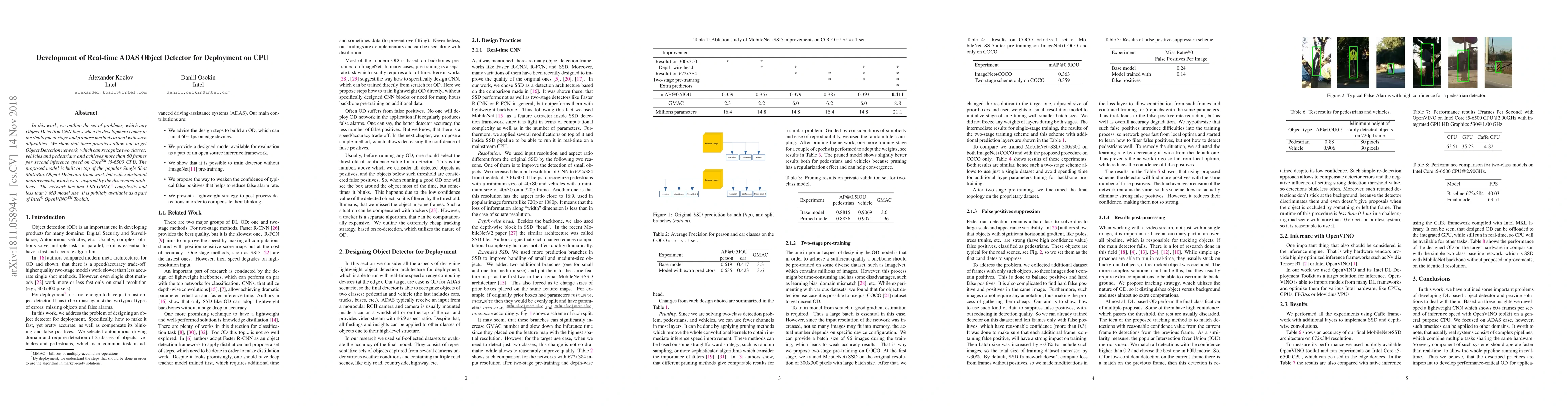 In this work, we outline the set of problems, which any Object Detection CNN faces when its development comes to the deployment stage and propose methods to deal with such difficulties. We show that these practices allow one to get Object Detection network, which can recognize two classes: vehicles and pedestrians and achieves more than 60 frames per second inference speed on Core$^{TM}$ i5-6500 CPU. The proposed model is built on top of the popular Single Shot MultiBox Object Detection framework but with substantial improvements, which were inspired by the discovered problems. The network has just 1.96 GMAC complexity and less than 7 MB model size. It is publicly available as a part of Intel$\circledR$ OpenVINO$^{TM}$ Toolkit.