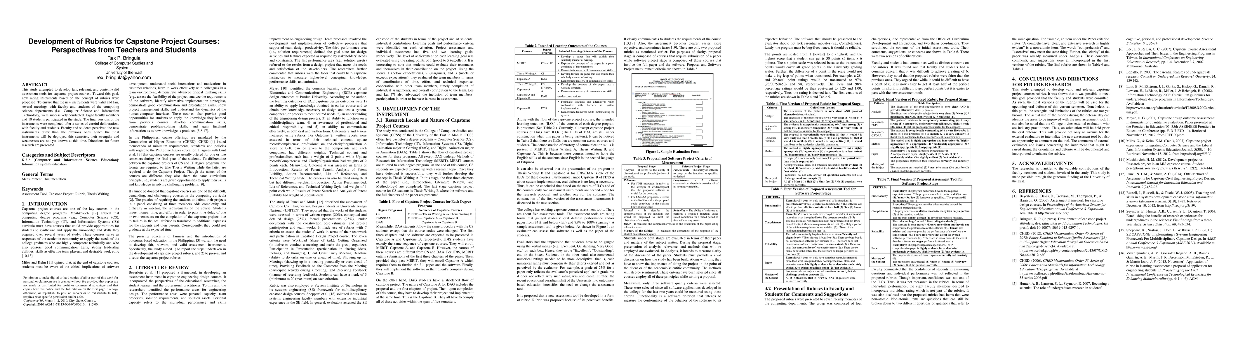 This study attempted to develop fair, relevant, and content-valid assessment tools for capstone project courses. Toward this goal, new rating instruments based on the concept of rubrics were proposed. To ensure that the new instruments were valid and fair, several meetings with faculty and students of the computing science departments (i.e., Computer Science and Information Technology) were successively conducted. Eight faculty members and 10 students participated in the study. The final versions of the instruments were completed after a series of careful deliberations with faculty and students. Faculty and students perceived the new instruments fairer than the previous ones. Since the final instruments will be deployed this semester, their strengths and weaknesses are not yet known at this time. Directions for future research are presented.