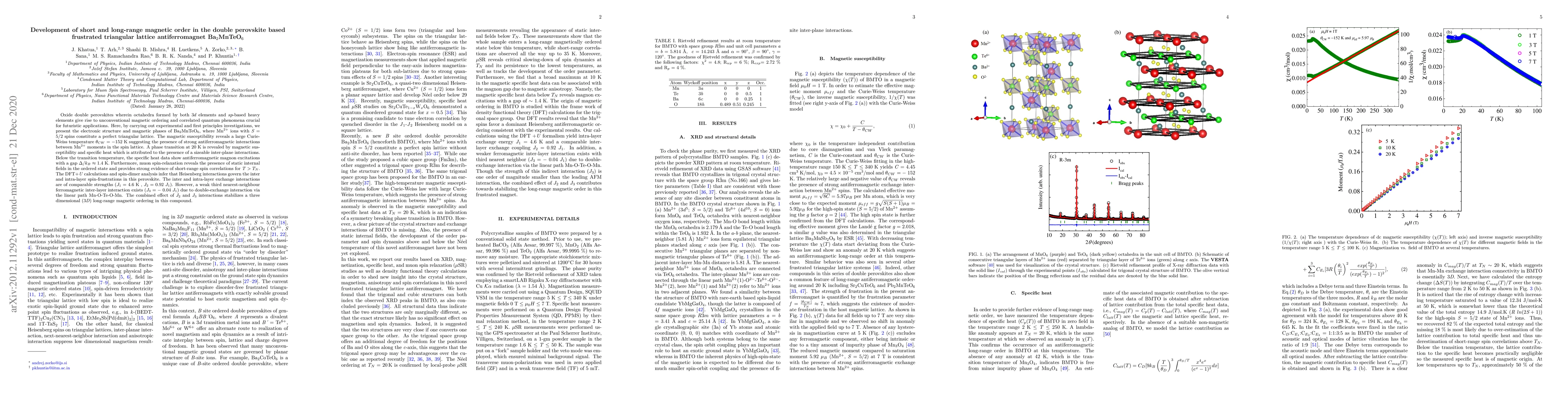 This study investigates the magnetic properties of Ba2MnTeO6, a frustrated triangular lattice antiferromagnet, revealing complex magnetic interactions and long-range order driven by competing exchange interactions. Using experimental techniques and theoretical calculations, the research uncovers how these interactions stabilize magnetic order despite frustration, offering insights into novel quantum magnetic phenomena.