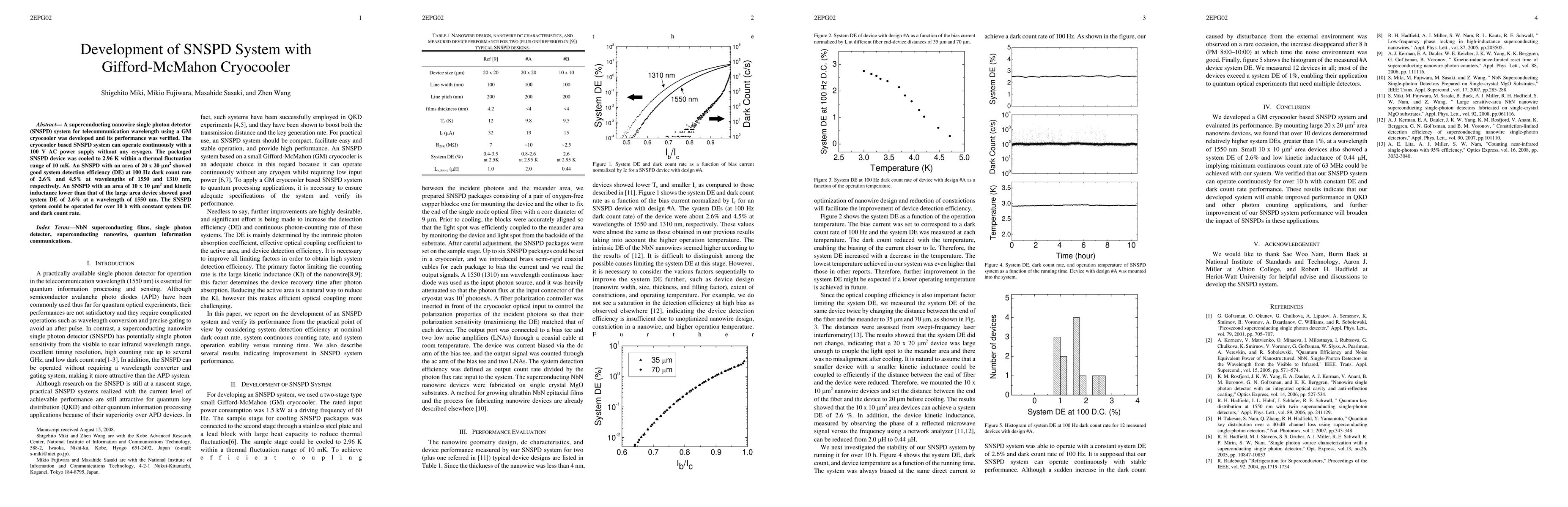 This paper details the development of a superconducting nanowire single photon detector (SNSPD) system utilizing a Gifford-McMahon cryocooler for telecommunication wavelengths. The system demonstrated stable operation at 2.96 K with a 100 V AC power supply, achieving high detection efficiency and low dark count rates for both 1550 and 1310 nm wavelengths.