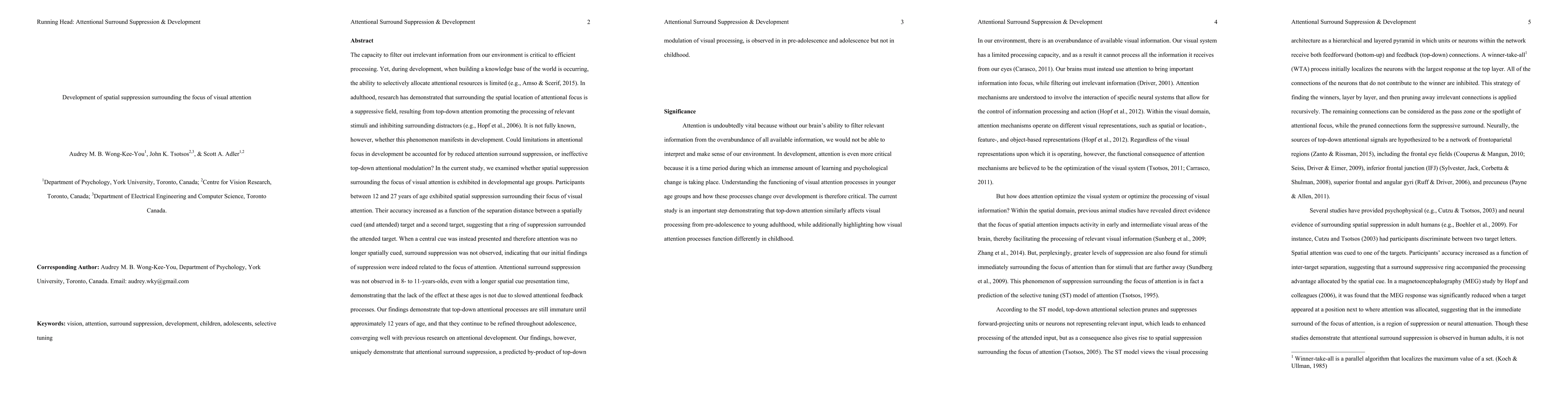 This research contributes to the understanding of attentional development by demonstrating age-related differences in attentional surround suppression, linking it to the maturation of top-down feedback processes.