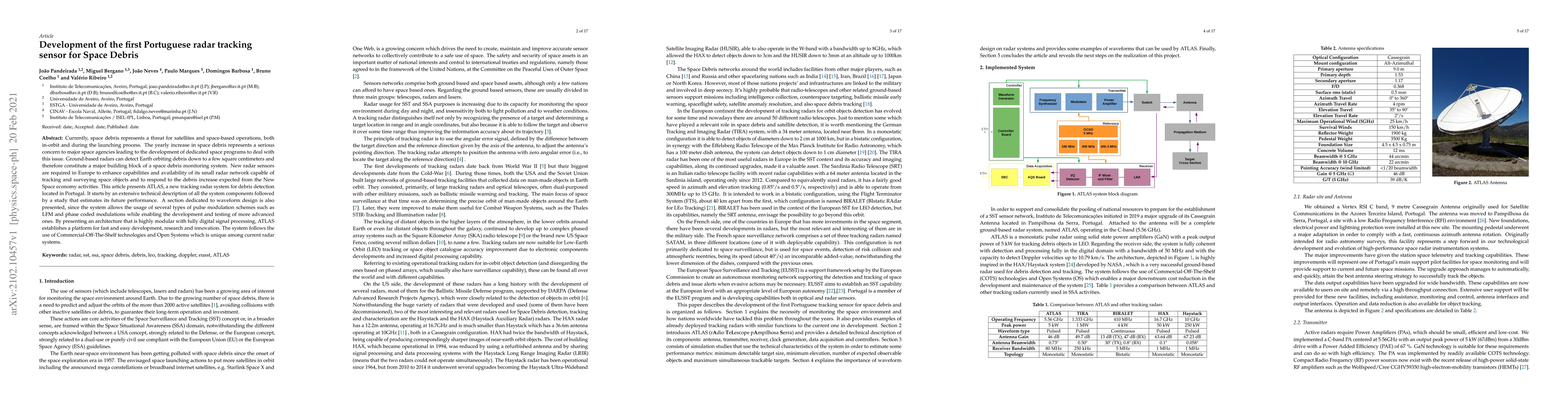 Currently, space debris represents a threat for satellites and space-based operations, both in-orbit and during the launching process. The yearly increase in space debris represents a serious concern to major space agencies leading to the development of dedicated space programs to deal with this issue. Ground-based radars can detect Earth orbiting debris down to a few square centimeters and therefore constitute a major building block of a space debris monitoring system. New radar sensors are required in Europe to enhance capabilities and availability of its small radar network capable of tracking and surveying space objects and to respond to the debris increase expected from the New Space economy activities. This article presents ATLAS, a new tracking radar system for debris detection located in Portugal. It starts by an extensive technical description of all the system components followed by a study that estimates its future performance. A section dedicated to waveform design is also presented, since the system allows the usage of several types of pulse modulation schemes such as LFM and phase coded modulations while enabling the development and testing of more advanced ones. By presenting an architecture that is highly modular with fully digital signal processing, ATLAS establishes a platform for fast and easy development, research and innovation. The system follows the use of Commercial-Off-The-Shelf technologies and Open Systems which is unique among current radar systems.
