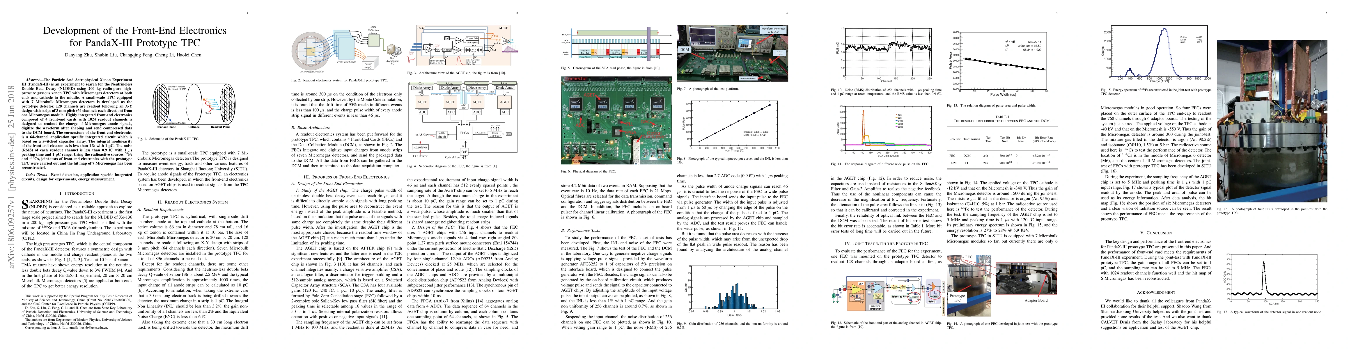 The PandaX-III experiment aims to detect Neutrinoless Double Beta Decay using a high-pressure gaseous xenon TPC with Micromegas detectors. A prototype TPC with 128 channels readout was developed, featuring highly integrated front-end electronics with a 64-channel ASIC for signal processing, achieving less than 1% integral nonlinearity and 0.9 fC RMS noise.