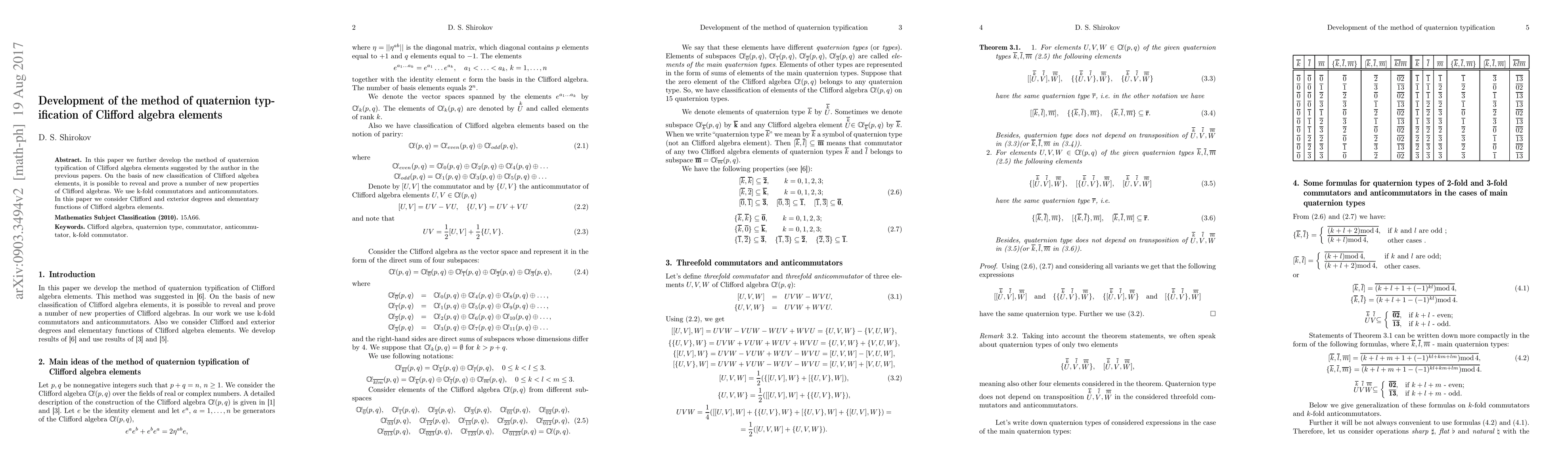 This paper refines the method for representing Clifford algebra elements using quaternion typification, revealing new properties through k-fold commutators and anticommutators, and explores Clifford and exterior degrees alongside elementary functions.