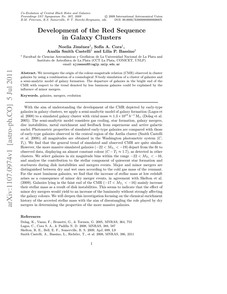 We investigate the origin of the color-magnitude relation (CMR) observed in cluster galaxies by using a combination of a cosmological N-body simulation of a cluster of galaxies and a semi-analytic model of galaxy formation. The departure of galaxies in the bright end of the CMR with respect to the trend defined by less luminous galaxies could be explained by the influence of minor mergers.