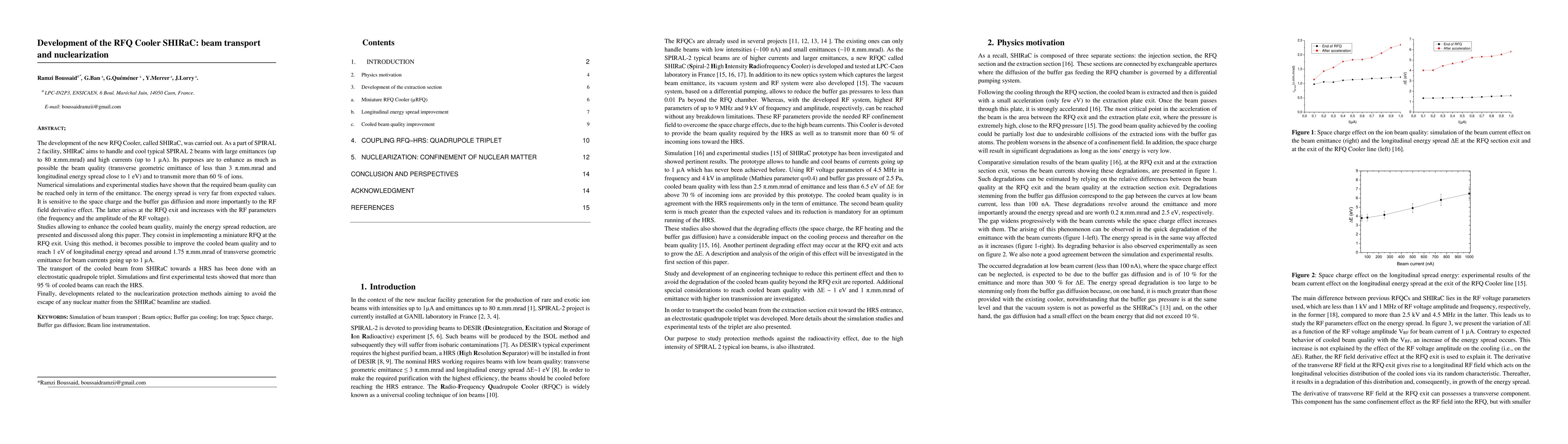 The paper details the development of the RFQ Cooler SHIRaC, designed to enhance beam quality and transport efficiency for SPIRAL 2 facility beams. Despite achieving desired emittance, challenges remain in reducing energy spread due to RF field derivative effects, which are addressed by implementing a miniature RFQ. The cooled beam transport to HRS is successful with over 95% efficiency, and nuclearization protection methods are also developed to prevent nuclear matter escape.