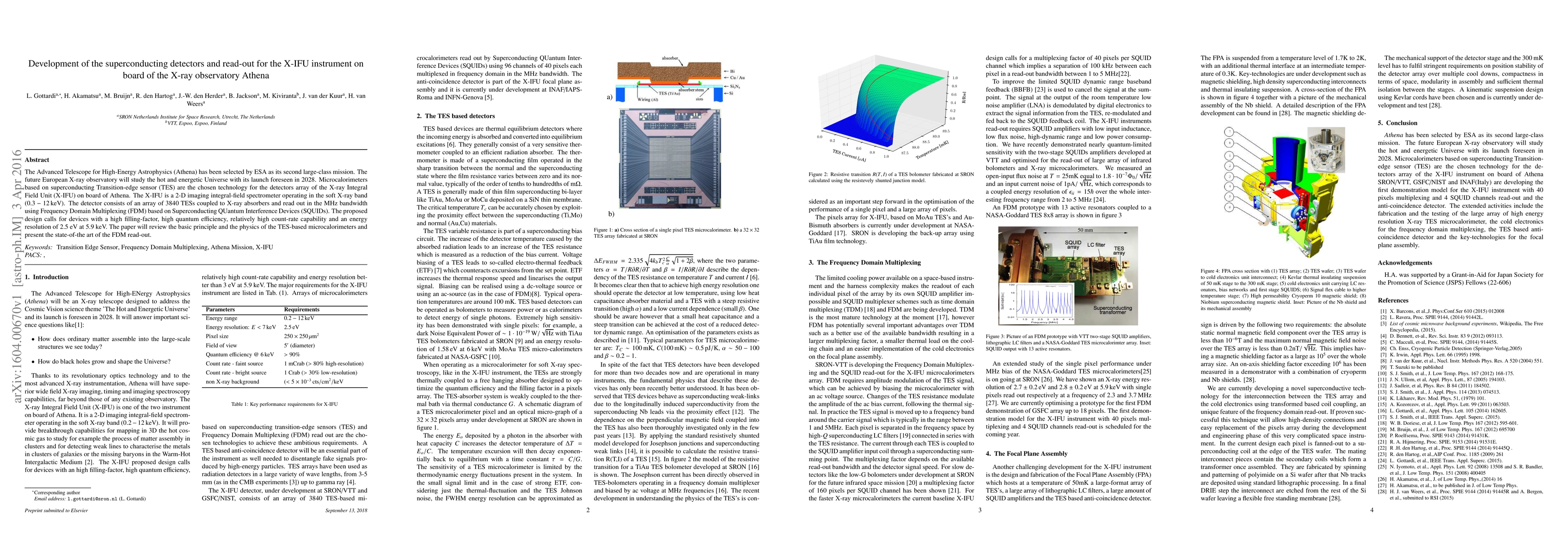 This paper discusses the development of superconducting detectors and readout systems for the X-ray Integral Field Unit (X-IFU) on the Athena X-ray observatory, focusing on microcalorimeters based on Transition-edge sensors (TES) and Frequency Domain Multiplexing (FDM) read-out using SQUIDs. The goal is to achieve high performance in detecting soft X-rays with excellent energy resolution.