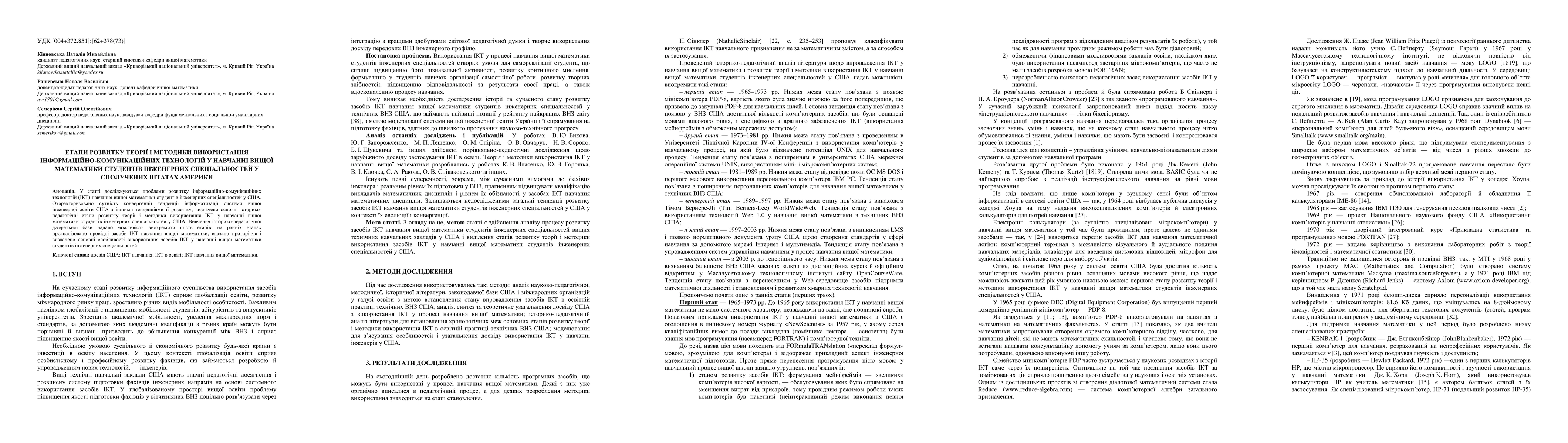 This paper explores the historical development of information and communication technologies (ICT) in teaching mathematics to engineering students in the United States, identifying six key stages and analyzing the associated trends, contradictions, and unique features of ICT use in this educational context.