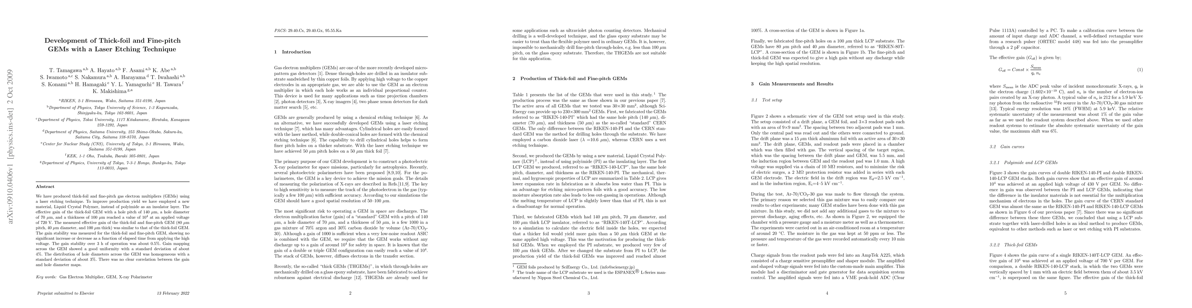 Researchers developed GEMs with improved production yield using a laser etching technique and Liquid Crystal Polymer insulator layer, achieving an effective gain of up to 10^4 at 720V.