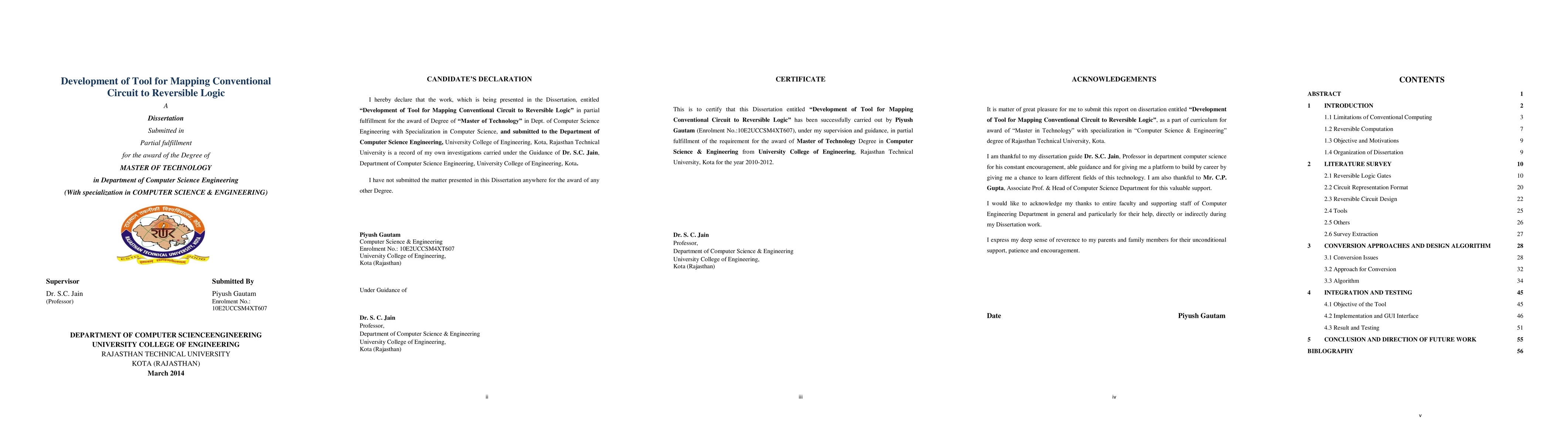 In the last decades, great achievements have been made in the development of computing machines. However, due to exponential growth of transistor density and in particular due to tremendously increasing power consumption, researchers expect that "Conventional Technologies" like Complementary Metal-Oxide Semiconductor will reach their limits in near future. To further satisfy the needs for more computational power, speed, less size etc. alternatives are needed. Reversible Computation is the emerging field and alternative of conventional technologies. Reversible Computation is emerging as a promising solution and likely to work on extremely low power technologies and offer high speed computations. The reversibility retains the capability to retrieve the input data from output and minimizes heat dissipation. As migration to new technology leave a lot of work done in current technology will make the acceptability difficult. One side familiarly with new technology and other side transformation of old circuit designs to new technology will pose a challenge to designers. A need for convertibility of irreversible circuit to reversible circuit was felt that can make a quick start and keep the development on track. In this dissertation a logic circuit design entry based on binary logic system has been taken up that can provide the ease of circuit design in binary logic system and output as reversible circuit. Entire environment is GUI based and easy to learn user friendly. This tool offers editing, storage and conversion into reversible facility.