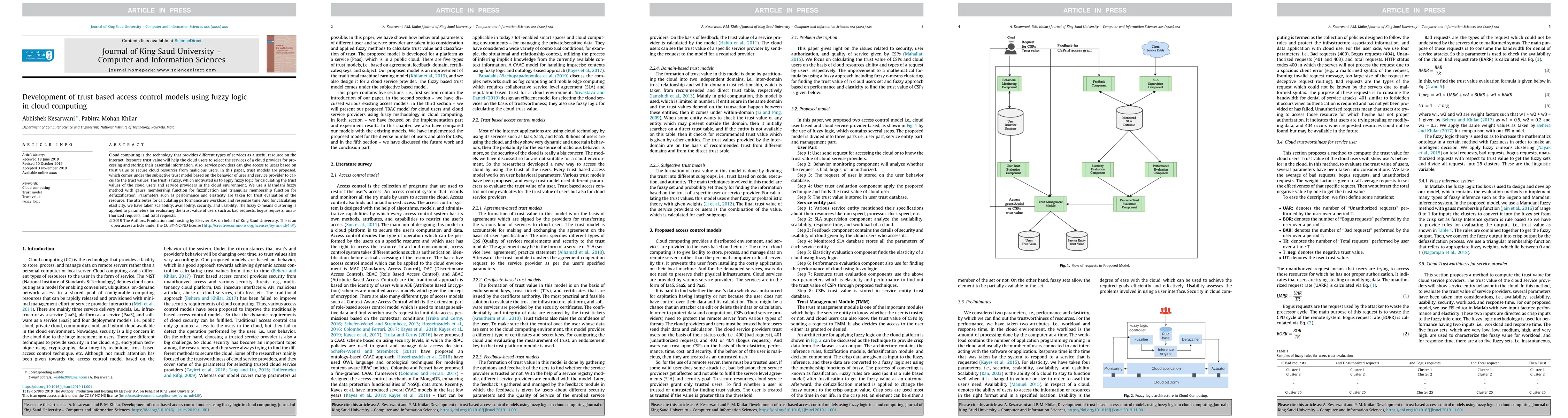 A fuzzy logic-based approach was used to develop a trust model for cloud computing