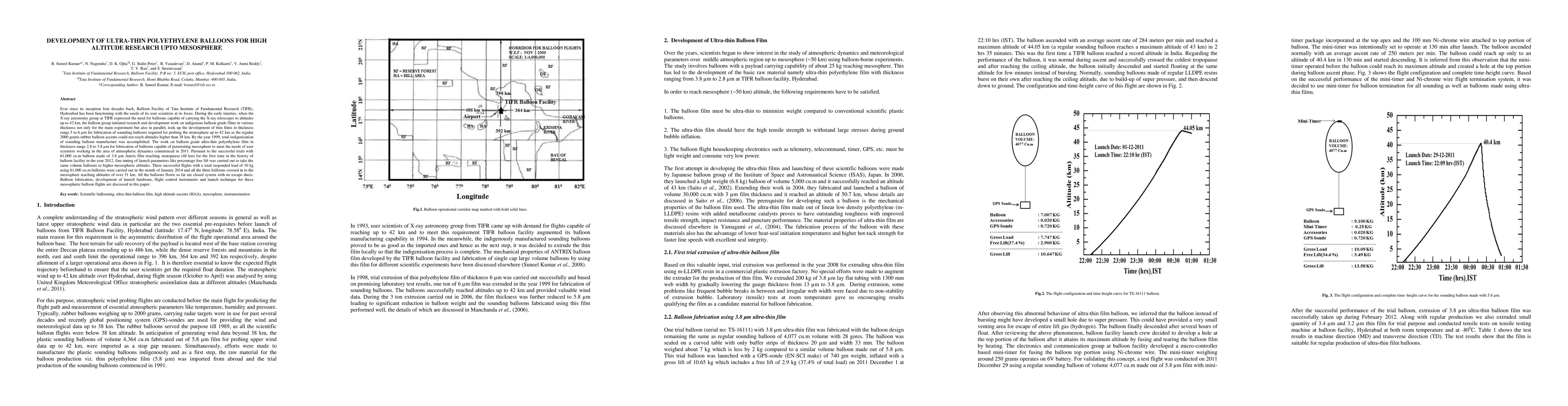 This paper details the development of ultra-thin polyethylene balloons for high-altitude research, reaching the mesosphere. The Tata Institute of Fundamental Research's Balloon Facility successfully created balloons capable of ascending to over 51 km, significantly advancing atmospheric dynamics research.