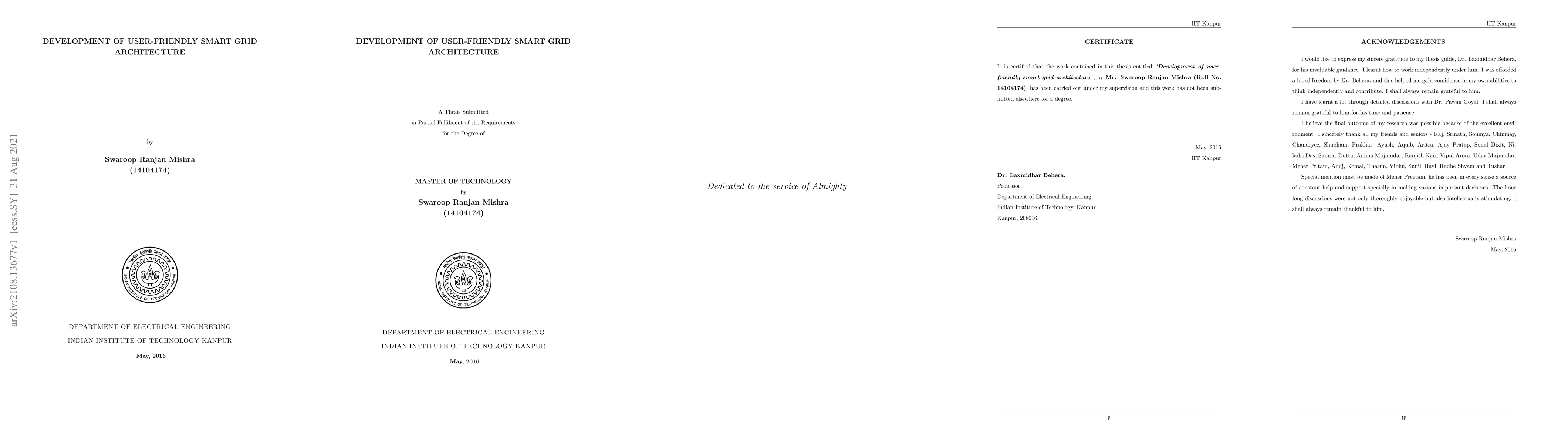This paper explores the development of user-friendly smart grid architectures, focusing on cyber-physical frameworks that address multi-disciplinary challenges in smart grid systems. The aim is to create an accessible interface for users to manage and optimize smart grid operations through an optimal microgrid architecture.