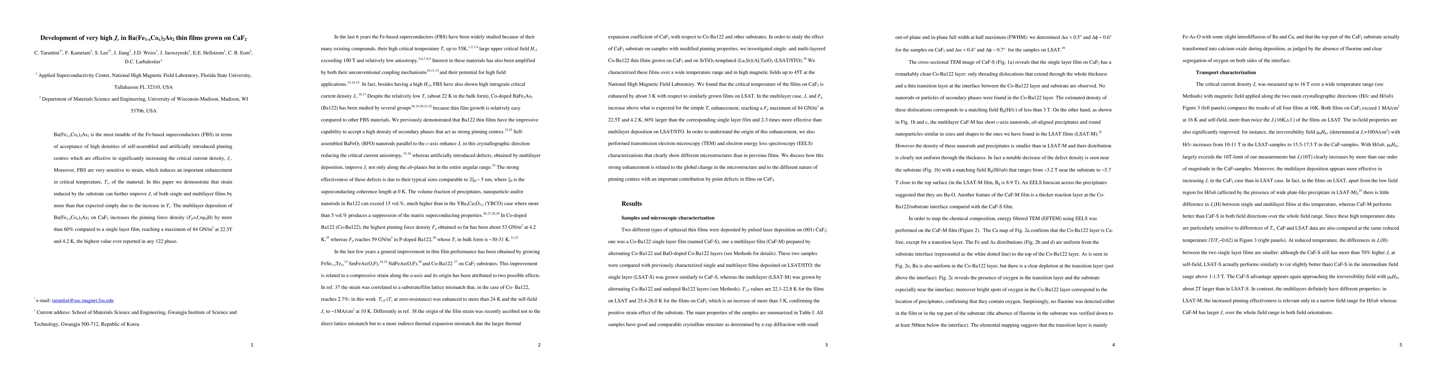 Researchers demonstrated that strain from a substrate can significantly increase the critical current density of Ba(Fe1-xCox)2As2 thin films, reaching a maximum of 84 GN/m^3, outperforming expectations.