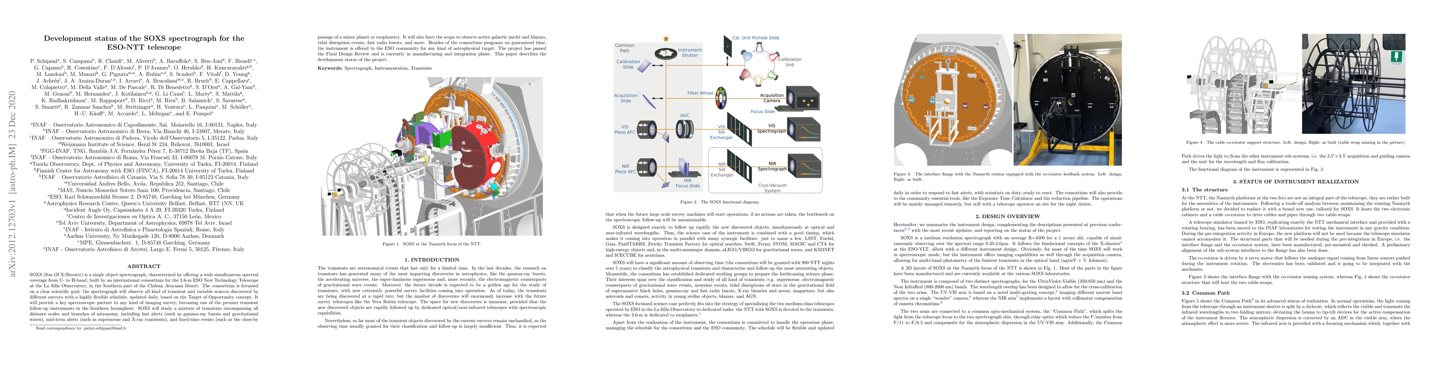 The SOXS spectrograph is a new instrument for the ESO-NTT telescope that will observe a wide range of transient and variable sources in the Southern hemisphere, covering various distance scales and branches of astronomy.