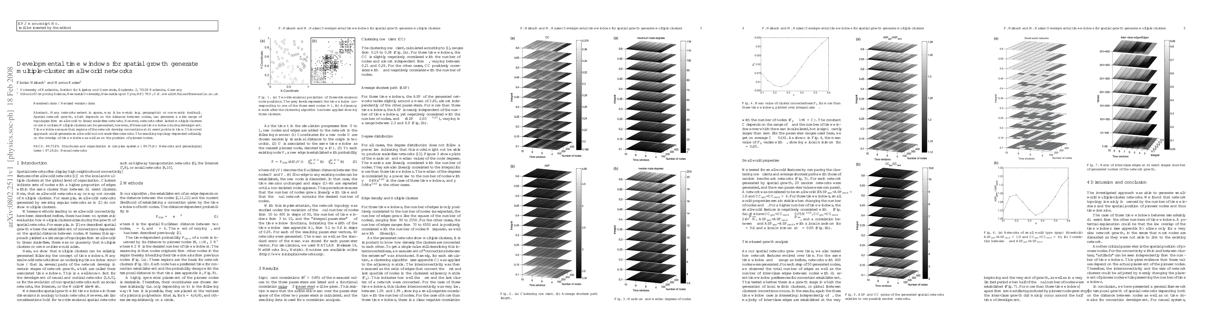 This paper explores how spatial network growth influenced by developmental time windows can generate multiple-cluster small-world networks, emphasizing the importance of temporal overlap and pioneer nodes in shaping network topology.