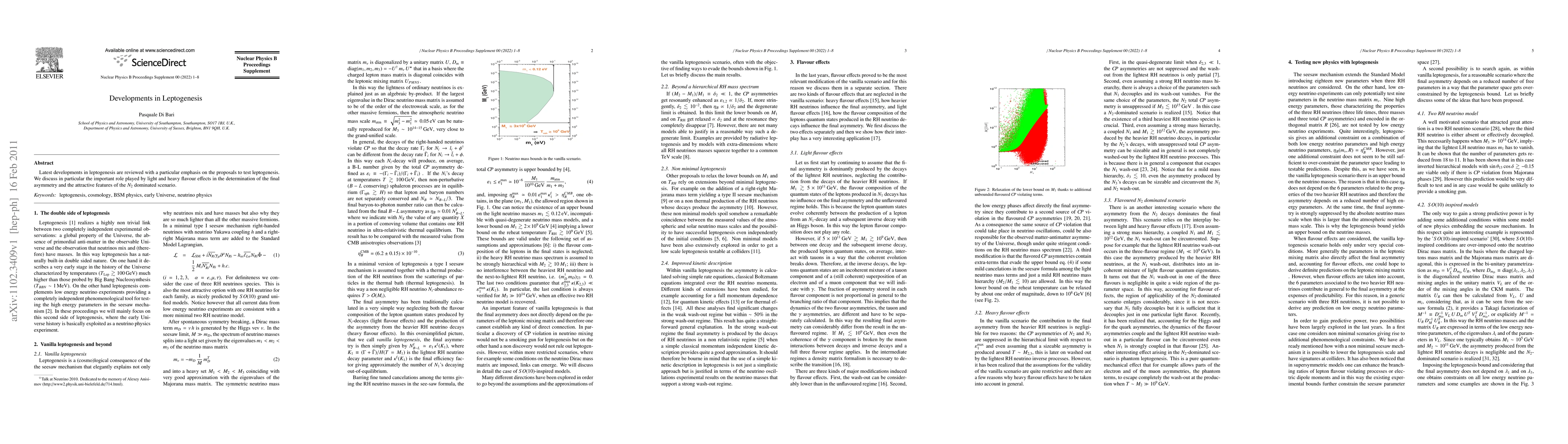Latest developments in leptogenesis are reviewed with a particular emphasis on the proposals to test leptogenesis. We discuss in particular the important role played by light and heavy flavour effects in the determination of the final asymmetry and the attractive features of the N_2 dominated scenario.
