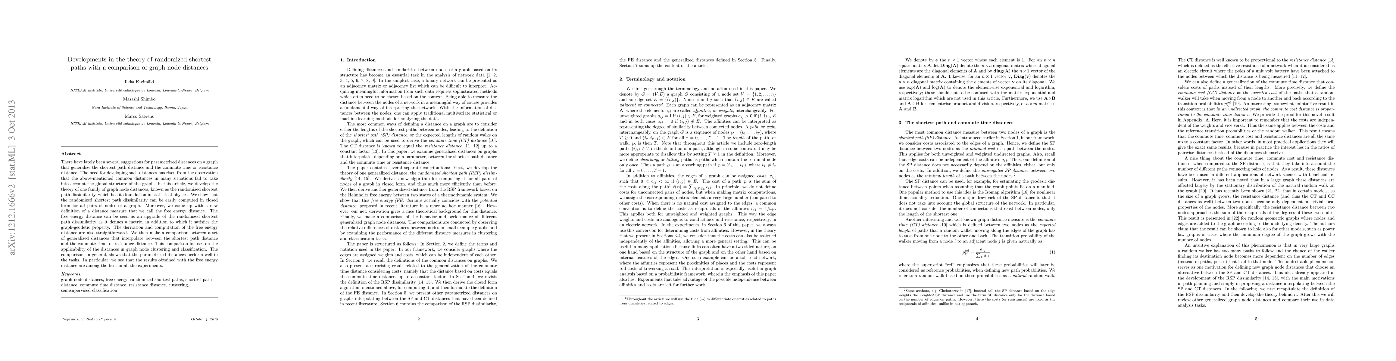 This paper develops the theory of randomized shortest path dissimilarity and introduces the free energy distance, an upgrade that satisfies metric and graph-geodetic properties. The study compares various generalized distances, showing that the free energy distance performs well in graph node clustering and classification.