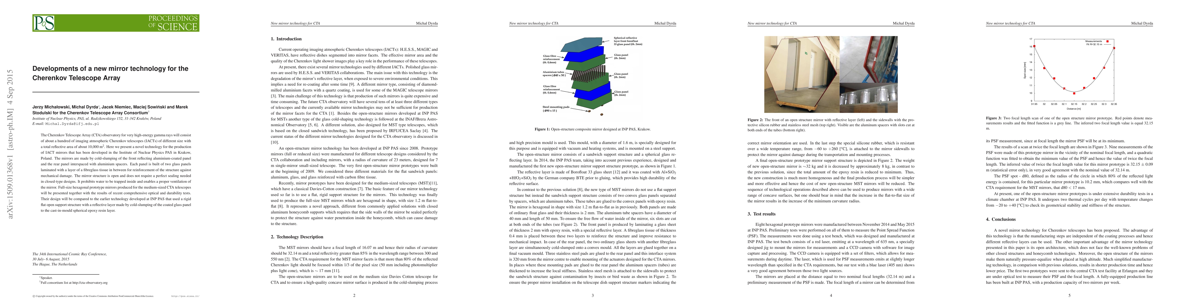 The Cherenkov Telescope Array (CTA) observatory for very high-energy gamma rays will consist of about a hundred of imaging atmospheric Cherenkov telescopes (IACTs) of different size with a total reflective area of about 10,000 m$^2$. Here we present a novel technology for the production of IACT mirrors that has been developed in the Institute of Nuclear Physics PAS in Krakow, Poland. The mirrors are made by cold-slumping of the front reflecting aluminium-coated panel and the rear panel interspaced with aluminium spacers. Each panel is built of two glass panels laminated with a layer of a fibreglass tissue in between for reinforcement of the structure against mechanical damage. The mirror structure is open and does not require a perfect sealing needed in closed-type designs. It prohibits water to be trapped inside and enables a proper ventilation of the mirror. Full-size hexagonal prototype mirrors produced for the medium-sized CTA telescopes will be presented together with the results of recent comprehensive optical and durability tests. Their design will be compared to the earlier technology developed at INP PAS that used a rigid flat open support structure with a reflective layer made by cold-slumping of the coated glass panel to the cast-in-mould spherical epoxy resin layer.