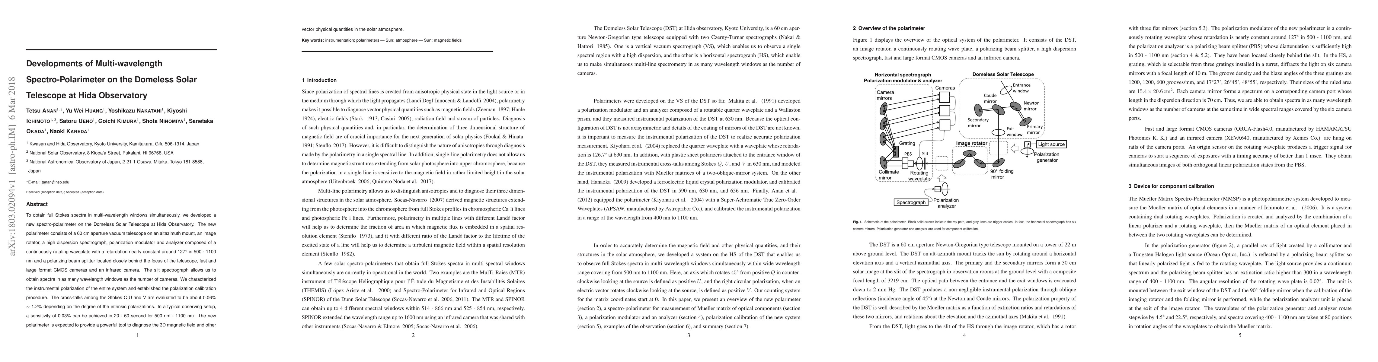 The paper describes the development of a multi-wavelength spectro-polarimeter for the Domeless Solar Telescope at Hida Observatory, which allows simultaneous full Stokes spectra acquisition. The instrument achieves high sensitivity and polarization calibration, enabling detailed 3D magnetic field and vector physical quantity diagnostics in the solar atmosphere.