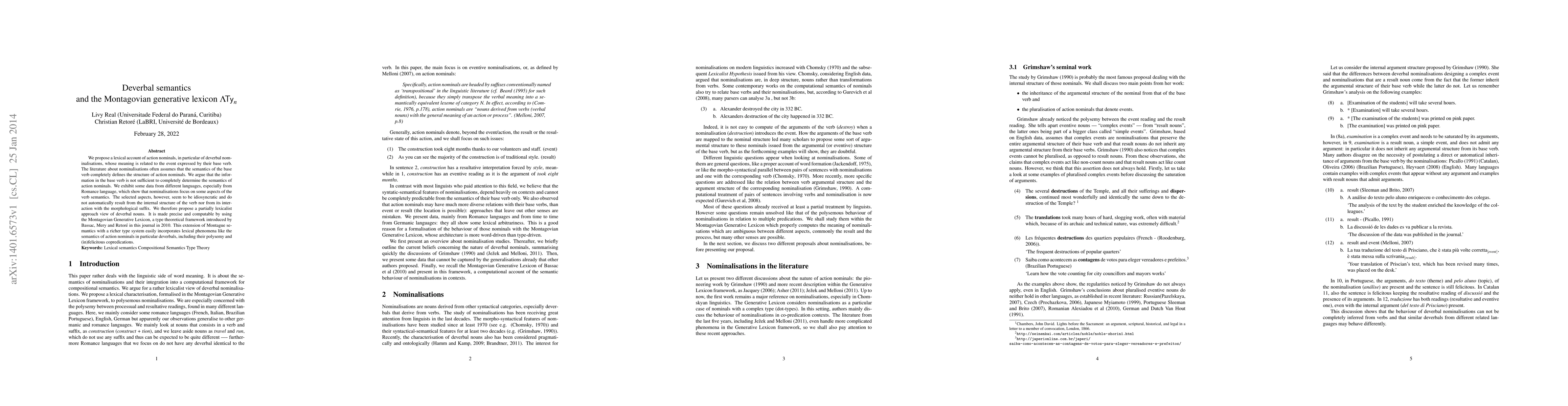 This paper proposes a lexicalist approach to the semantics of deverbal nominalisations, arguing that the base verb's semantics alone does not fully determine their meaning. It introduces the Montagovian Generative Lexicon to precisely model the idiosyncratic aspects of deverbal nouns, addressing their polysemy and co-occurrence issues.