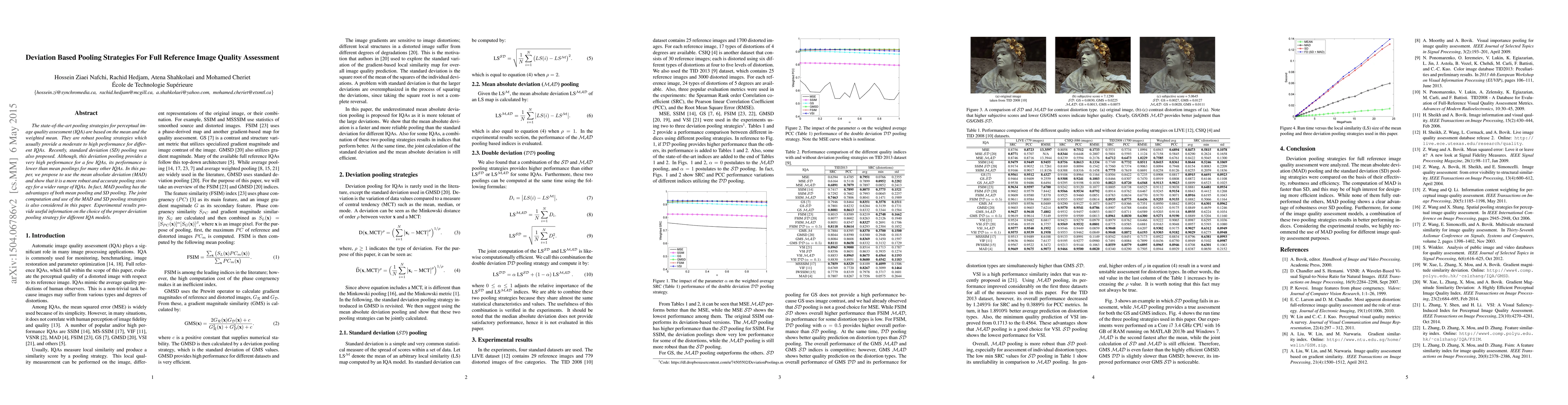 The paper proposes and analyzes deviation-based pooling strategies for full-reference image quality assessment, comparing mean absolute deviation (MAD) and standard deviation (SD) pooling strategies, and also considering a joint computation of both.