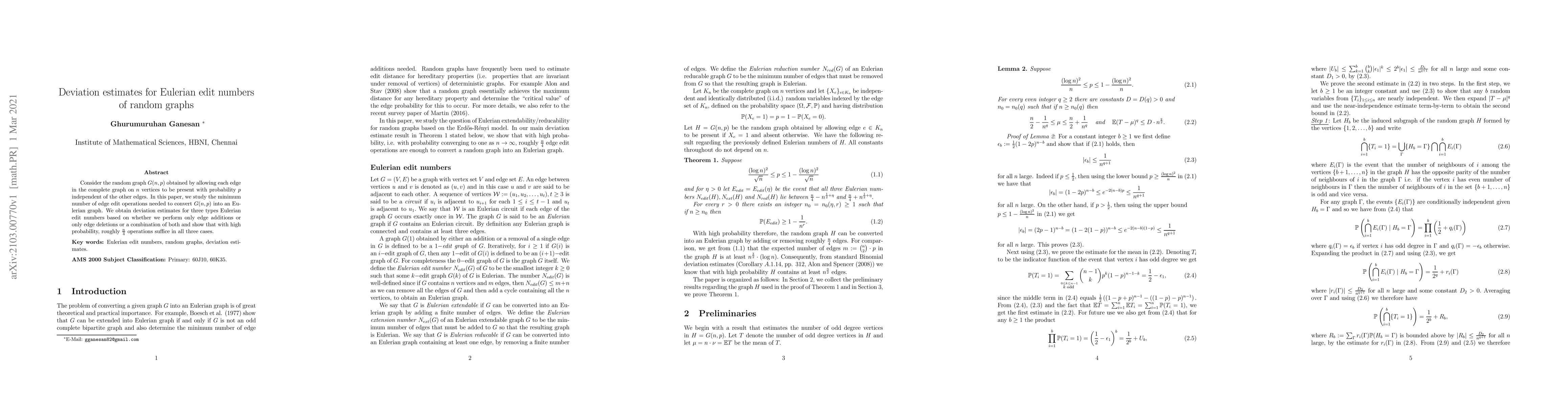 This paper estimates that to convert a random graph into an Eulerian graph, roughly n/4 edge operations are needed with high probability, regardless of whether only edges or both edges are added or deleted.