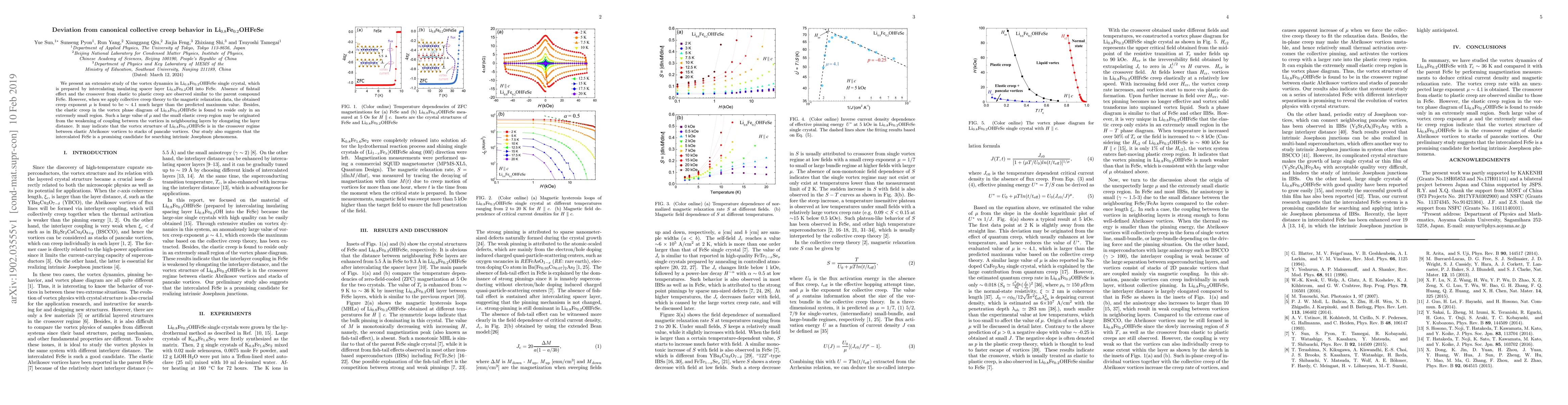 The novelty of this work lies in identifying the deviation from canonical collective creep behavior in Li$_{0.8}$Fe$_{0.2}$OHFeSe, highlighting its unique vortex structure and potential for intrinsic Josephson phenomena.