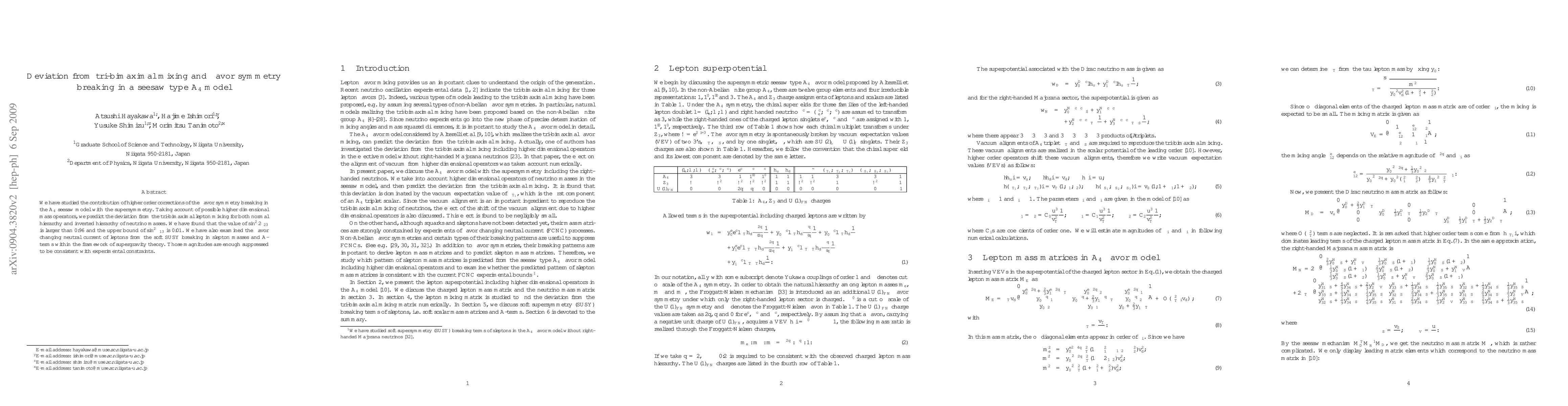 This paper investigates higher-order corrections in an $A_4$ seesaw model with supersymmetry, predicting deviations from tri-bimaximal lepton mixing. It finds that $\sin^2 2\theta_{23}$ exceeds 0.96 and $\sin^2\theta_{13}$ is bounded above by 0.01, while ensuring flavor changing neutral currents remain suppressed within experimental limits.