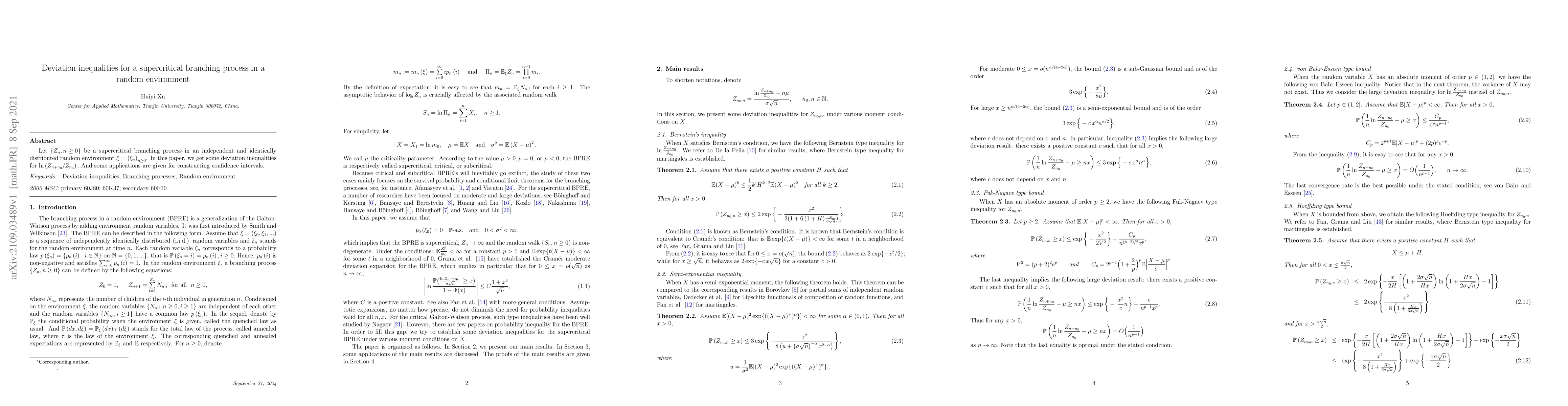 This paper derives deviation inequalities for a supercritical branching process in a random environment, focusing on the ratio $\ln (Z_{n+n_{0}} / Z_{n_{0}})$, and provides applications for constructing confidence intervals.