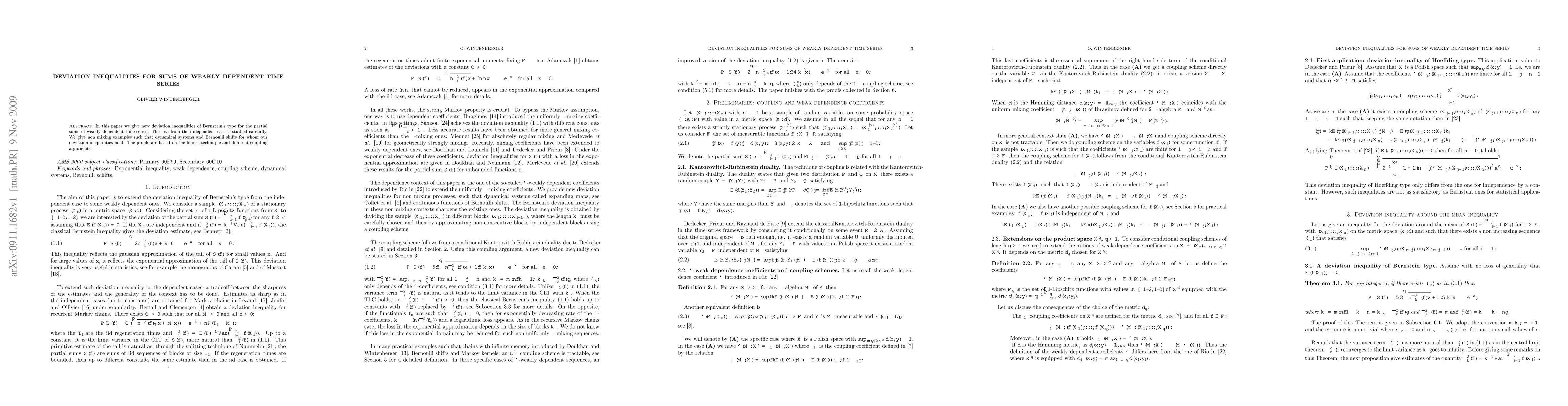 New deviation inequalities for sums of weakly dependent time series have been established, with implications for understanding loss from the independent case in certain dynamical systems.