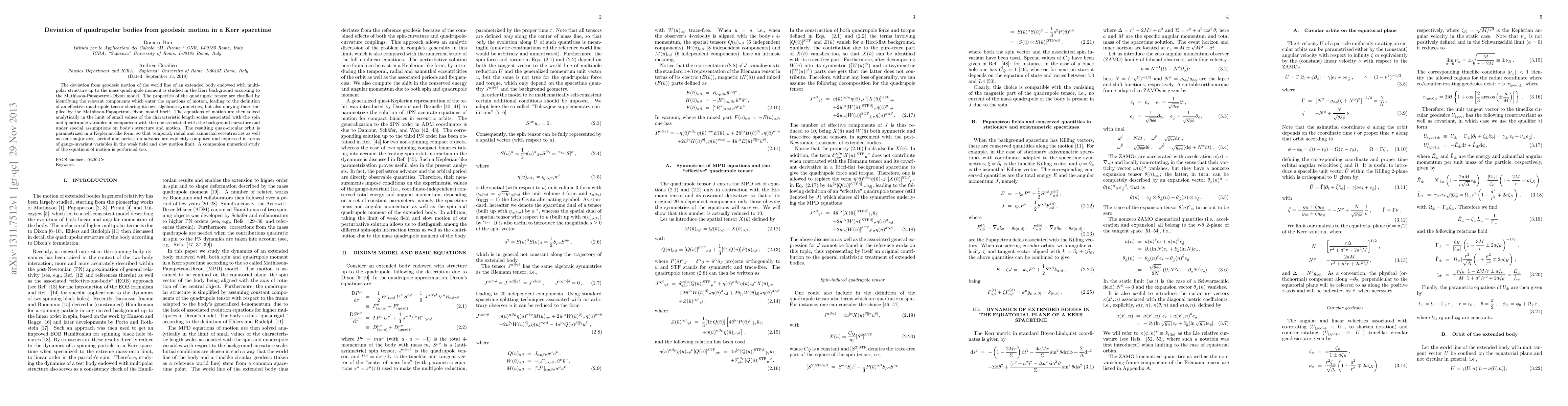 This paper studies the deviation from geodesic motion of quadrupolar bodies in a Kerr spacetime using the Mathisson-Papapetrou-Dixon model, identifying relevant quadrupole tensor components and solving the equations analytically under small length scale assumptions. The resulting quasi-circular orbit is parametrized, with temporal, radial, and azimuthal eccentricities, semi-major axis, period, and periastron advance computed in terms of gauge-invariant variables.