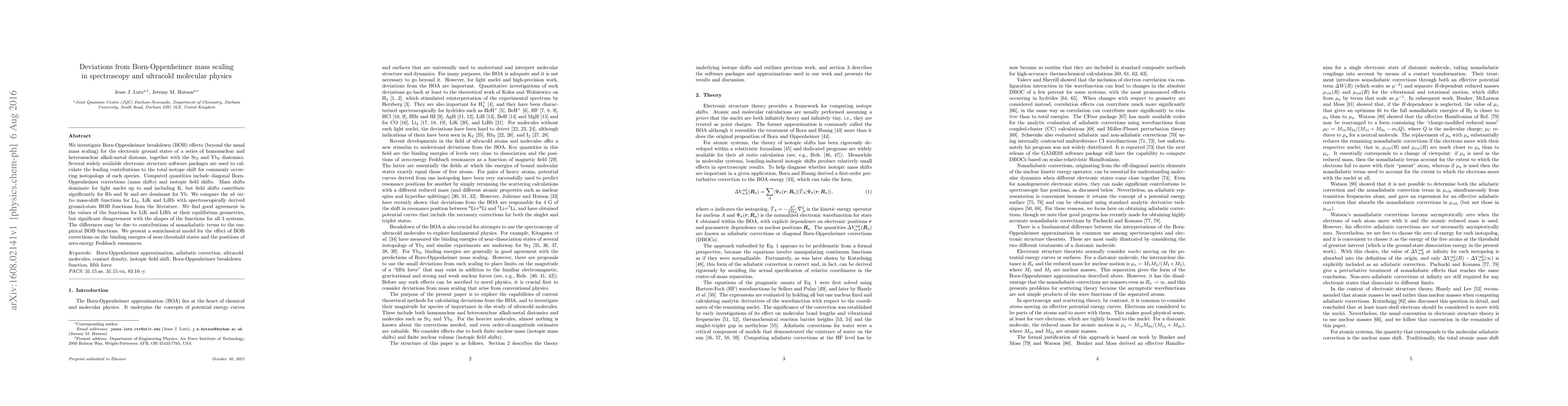 We investigate Born-Oppenheimer breakdown (BOB) effects (beyond the usual mass scaling) for the electronic ground states of a series of homonuclear and heteronuclear alkali-metal diatoms, together with the Sr$_2$ and Yb$_2$ diatomics. Several widely available electronic structure software packages are used to calculate the leading contributions to the total isotope shift for commonly occurring isotopologs of each species. Computed quantities include diagonal Born-Oppenheimer corrections (mass shifts) and isotopic field shifts. Mass shifts dominate for light nuclei up to and including K, but field shifts contribute significantly for Rb and Sr and are dominant for Yb. We compare the {\em ab initio} mass-shift functions for Li$_2$, LiK and LiRb with spectroscopically derived ground-state BOB functions from the literature. We find good agreement in the values of the functions for LiK and LiRb at their equilibrium geometries, but significant disagreement with the shapes of the functions for all 3 systems. The differences may be due to contributions of nonadiabatic terms to the empirical BOB functions. We present a semiclassical model for the effect of BOB corrections on the binding energies of near-threshold states and the positions of zero-energy Feshbach resonances.