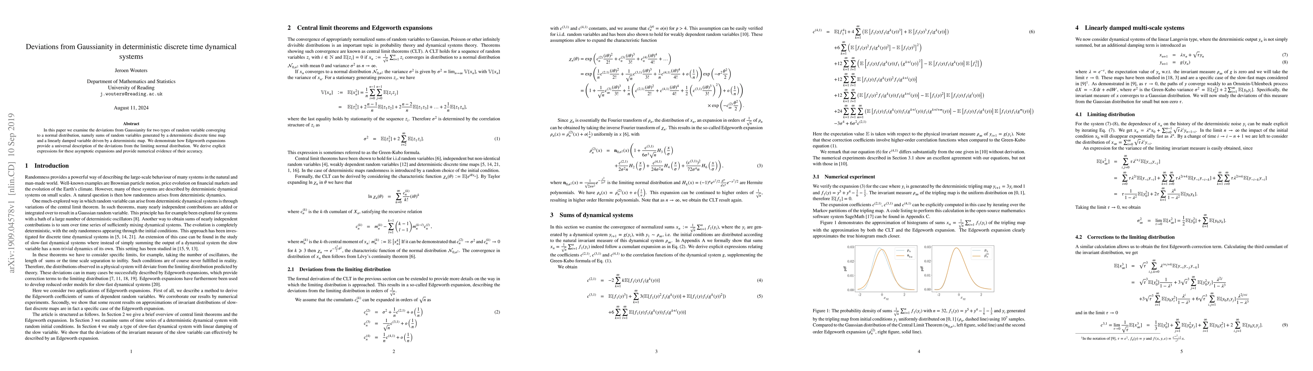 This research derives explicit Edgeworth expansion expressions to describe deviations from Gaussianity in two types of random variables converging to a normal distribution: sums from deterministic discrete time maps and linearly damped variables driven by deterministic maps. Numerical evidence supports the accuracy of these asymptotic expansions, providing a universal method for understanding non-normal behavior.