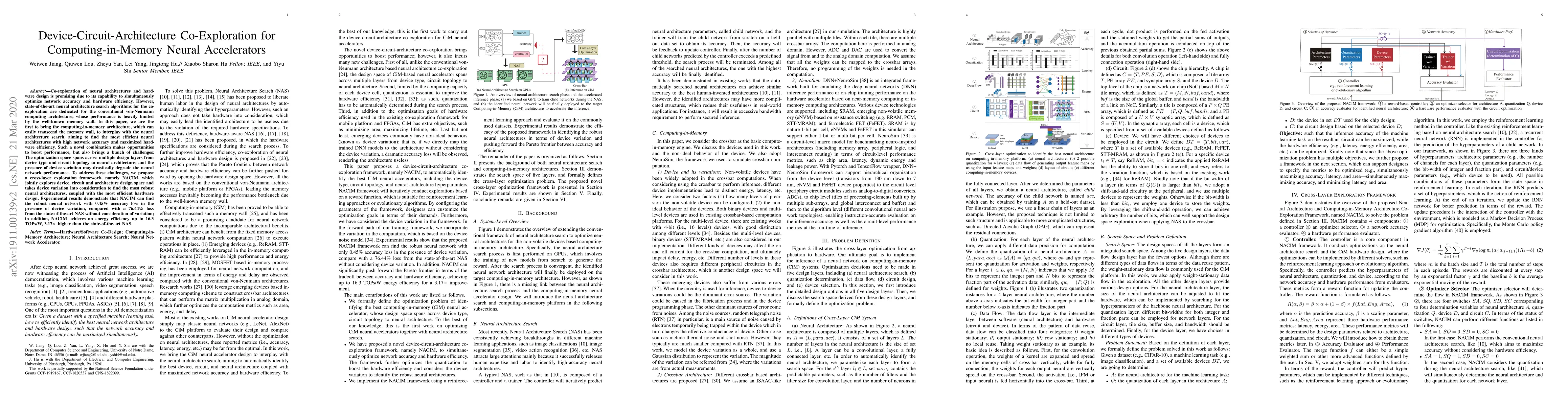 This paper proposes NACIM, a cross-layer exploration framework for co-designing neural architectures and computing-in-memory hardware to optimize both accuracy and efficiency, addressing challenges from device variation. Experimental results show NACIM achieves significantly higher energy efficiency and robustness compared to state-of-the-art neural architecture search methods.