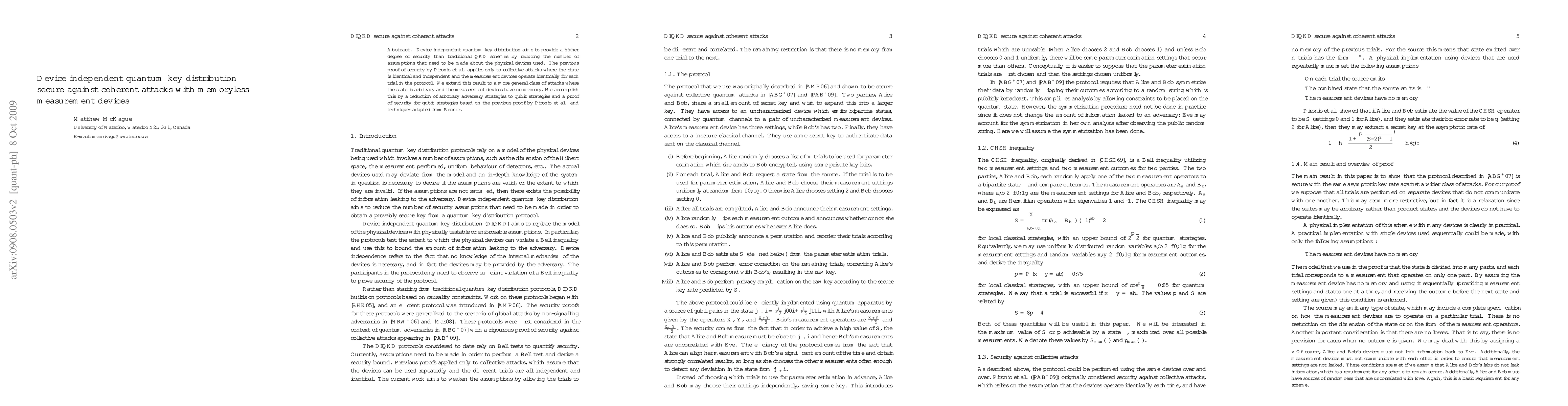 This research extends previous work on DIQKD by Pironio et al. and Renner, providing a more comprehensive security proof against coherent attacks with memoryless measurement devices, thereby advancing the field by addressing a broader class of attacks.