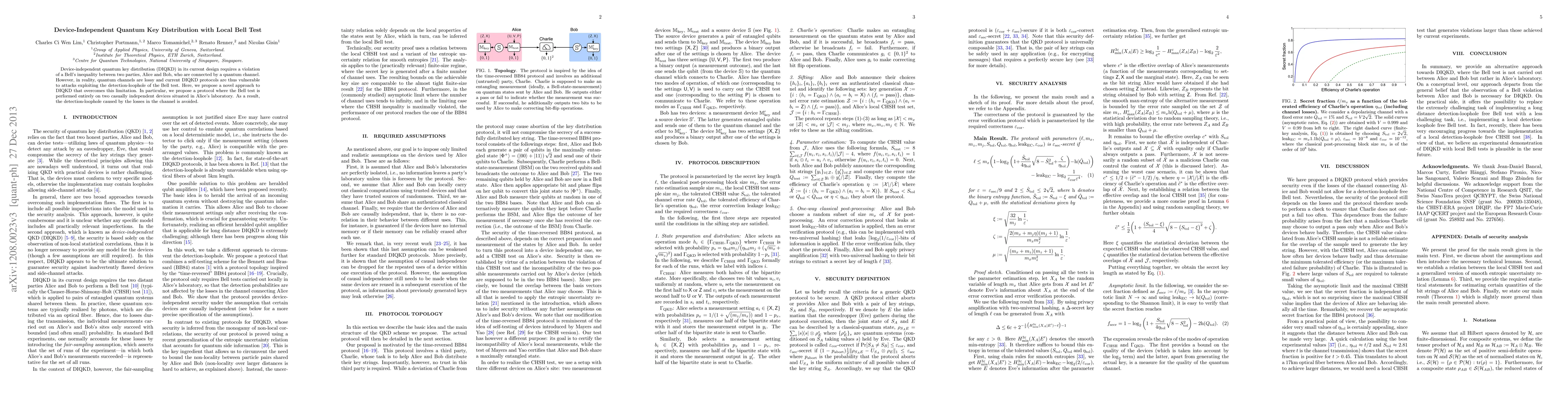 This paper proposes a novel device-independent quantum key distribution (DIQKD) protocol that overcomes the detection loophole by conducting the Clauser-Horne-Shimony-Holt (CHSH) test entirely within Alice's laboratory, thereby eliminating the vulnerability caused by quantum channel losses.